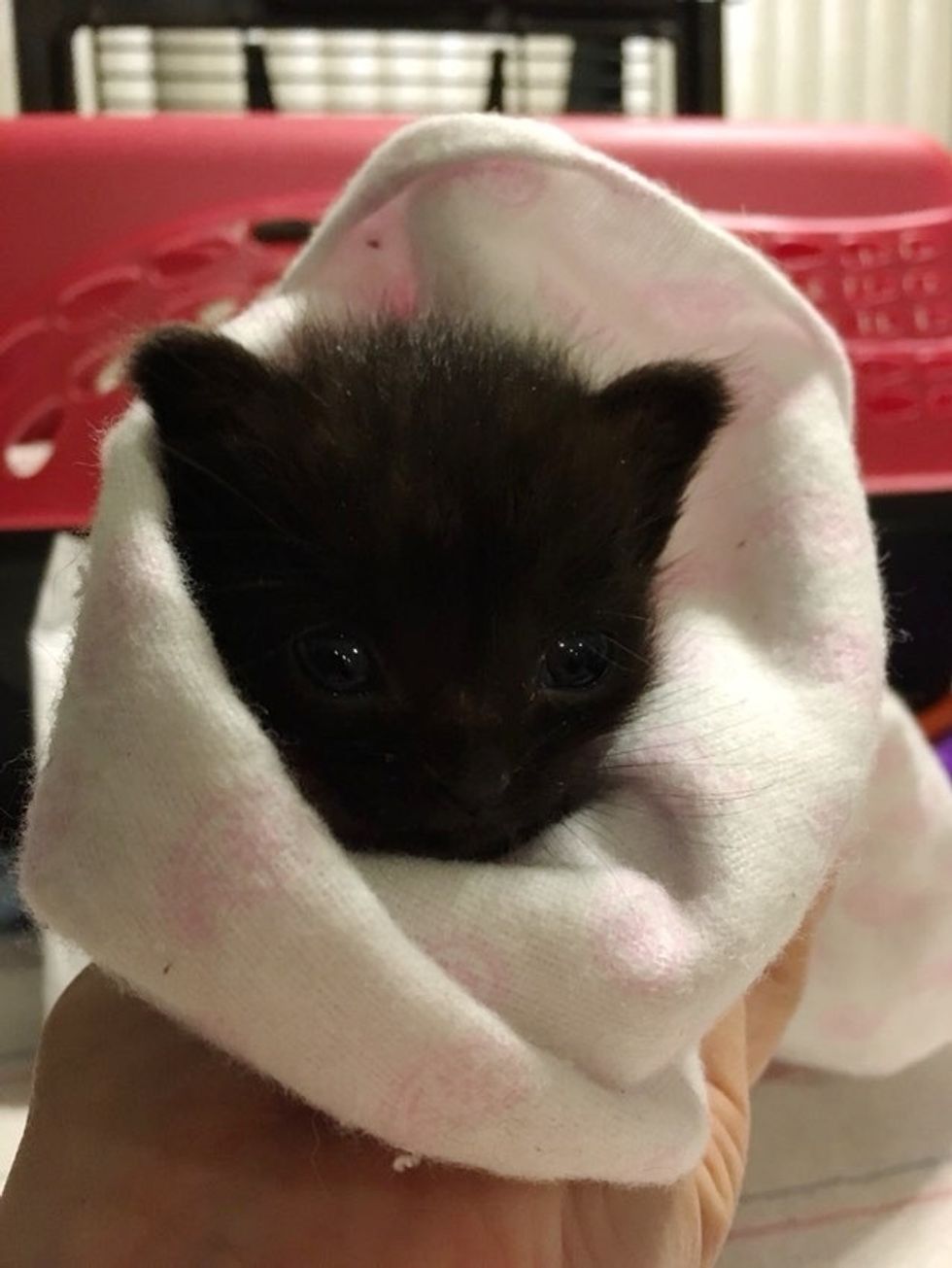 Nakia weighed just 3.5 ounces (99 grams) at three weeks old (when she should be around 10 ounces), as much as the newborn kittens at the rescue.