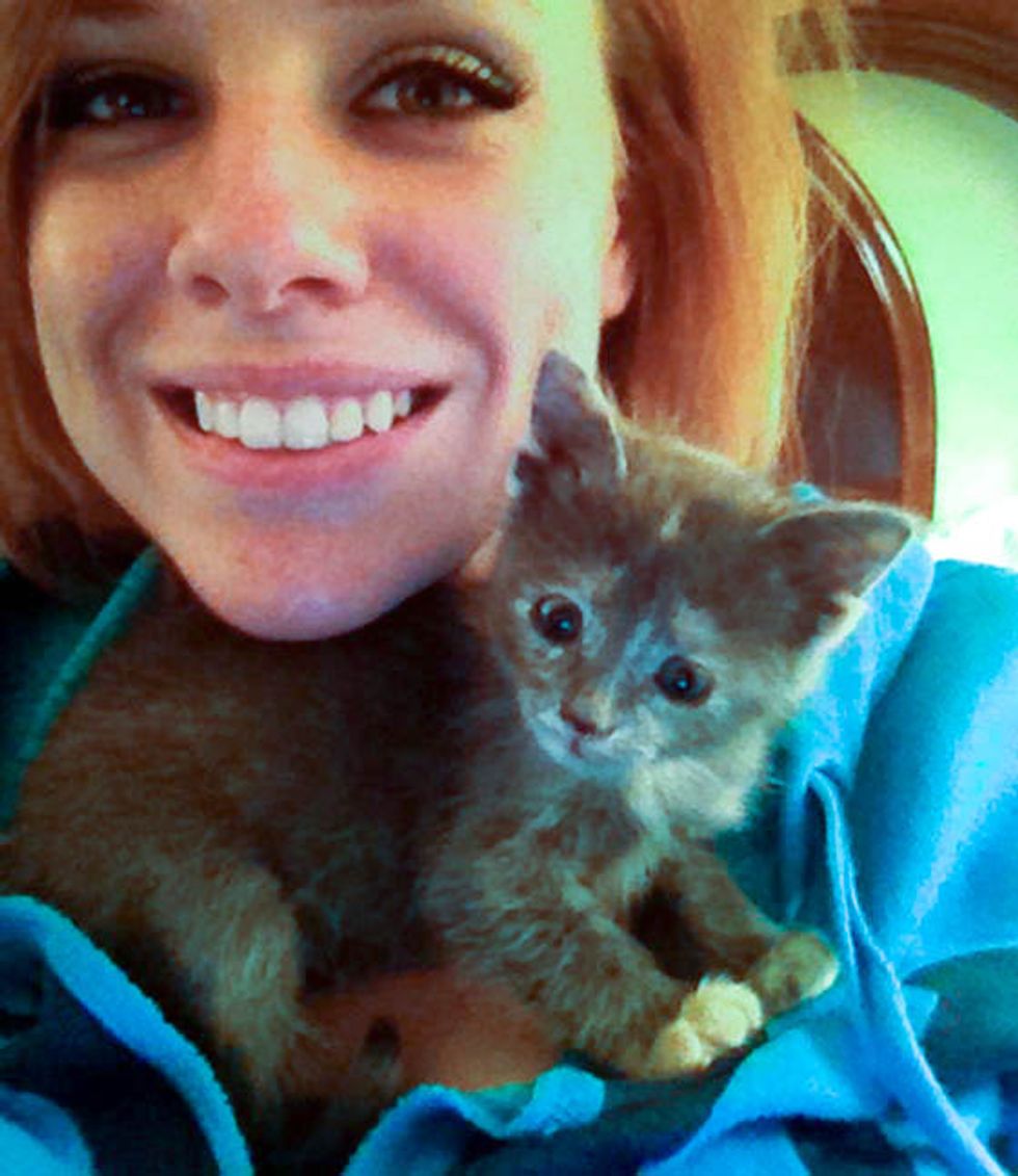 Edie was only a few days old when they rescued her. She fit in the palm of her human's hand.