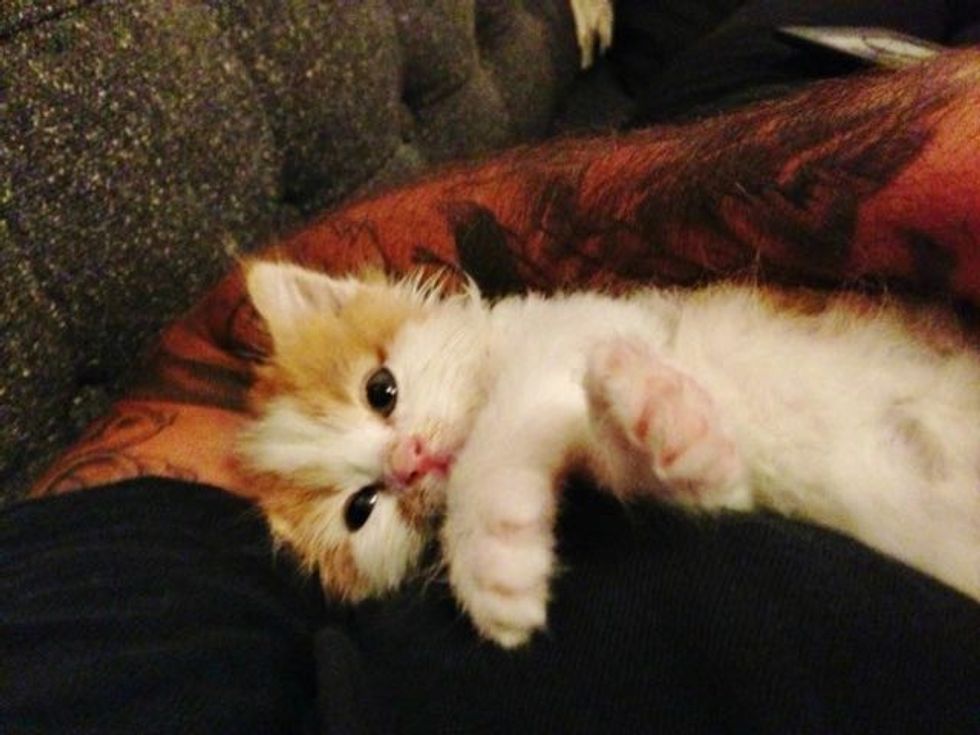 "His name is Walker. He's a rescue I took off the streets in downtown LA... No mom, no siblings. About 4 weeks old, and covered in dirt and fleas."