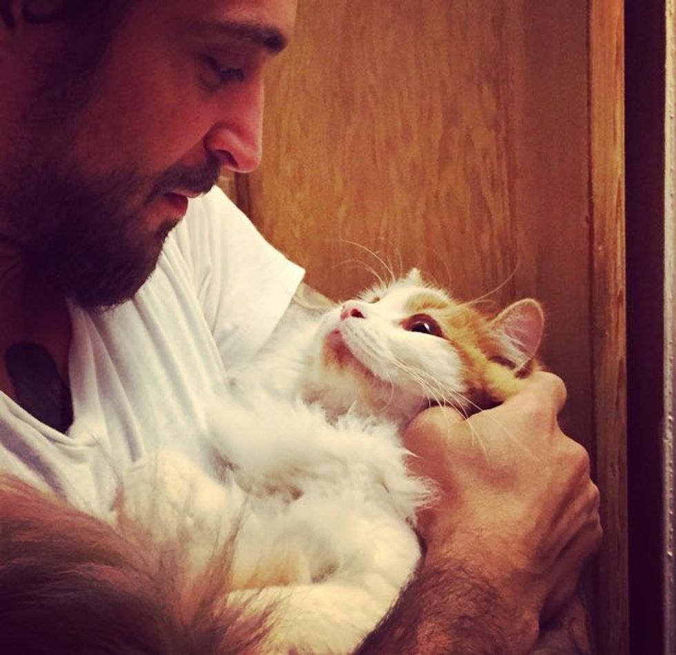 A tiny orphan kitten strayed into a this guy's life. They became family.