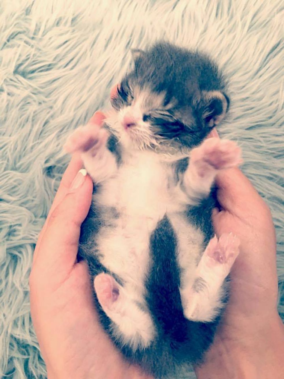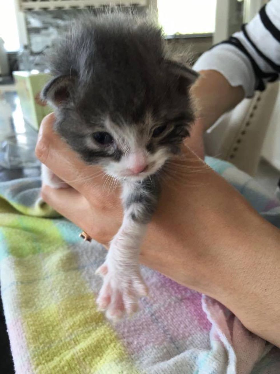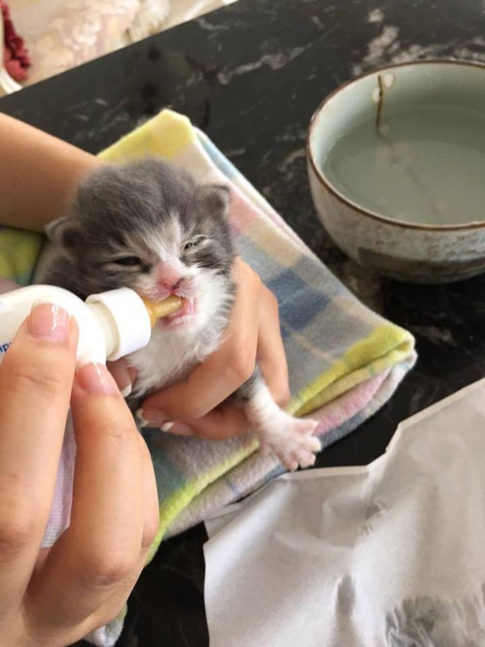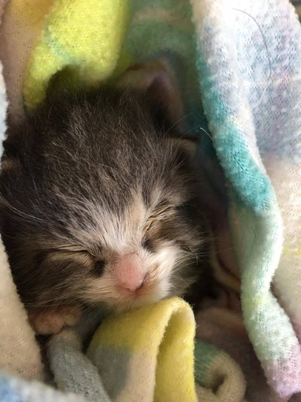 "He came from a site where we've rescued more than 40 kittens in the past 6 months. It's likely he belongs with a mama cat named Bridget as she has a bunch of other kittens the same age (all of which were rescued as well). We'll never know how he became separated from the rest of the litter," Tasha of VOKRA told Love Meow.