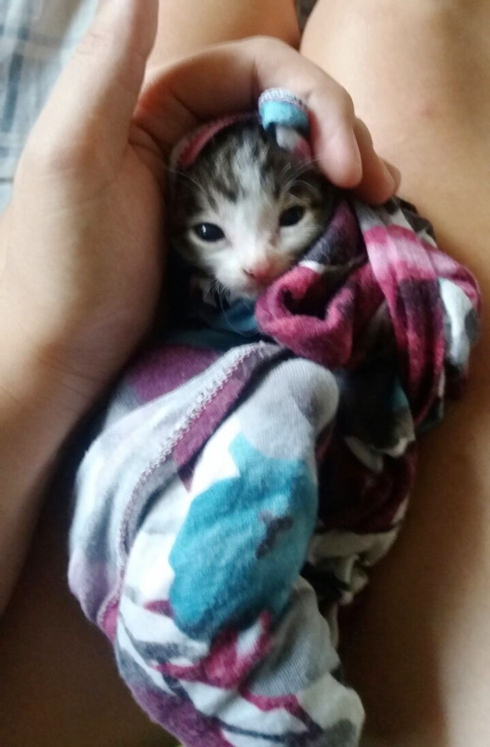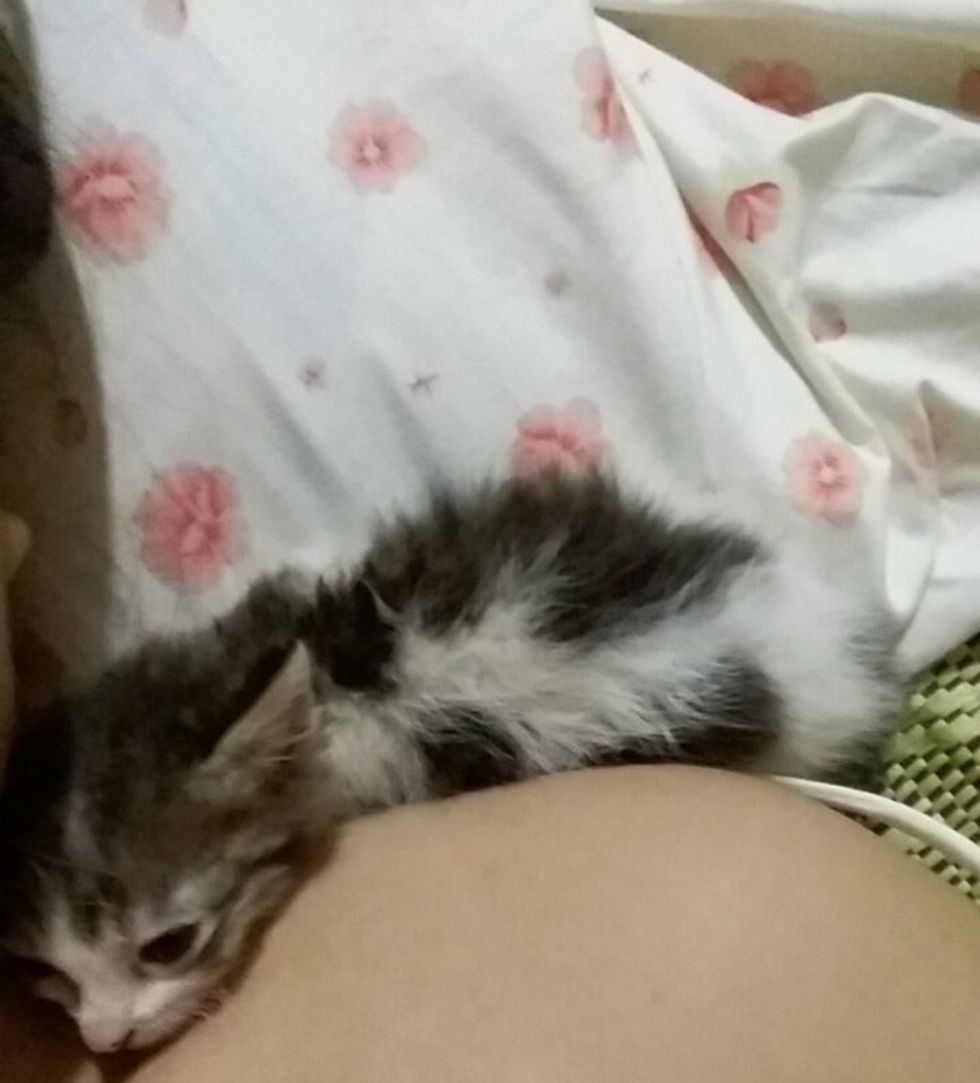 The kitten was very weak and not moving much when she was found.