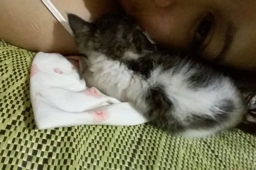 They didn't know if the kitten would survive the first night, but she did and kept fighting against the odds.