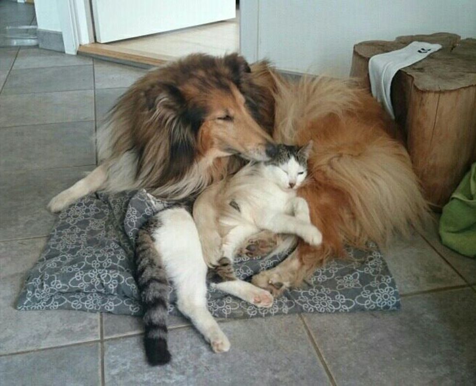 Molly took the little kitten under her wing, and the two began to cuddle every day.