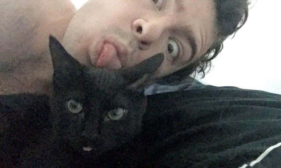 A tiny 5 week old kitten was found wandering around the streets all alone. When a young man picked him up at the shelter, he fell asleep in his arms and made him his human for life.