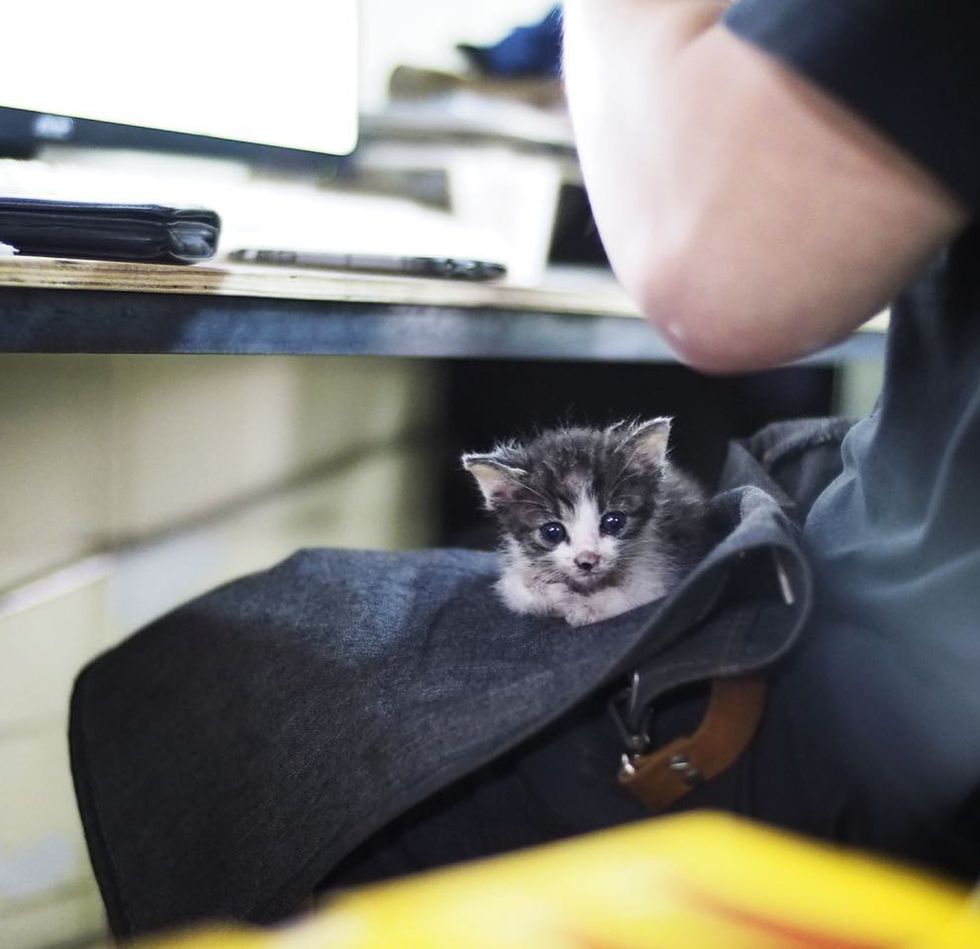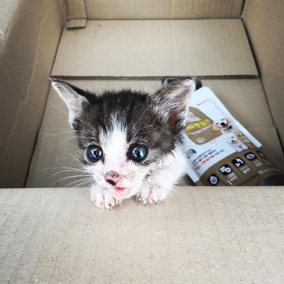 The couple suspects that the kitten was left behind by his cat mother and had been wandering on his own for awhile. The fact that the kitten survived without much food at such a young age was a miracle on its own.