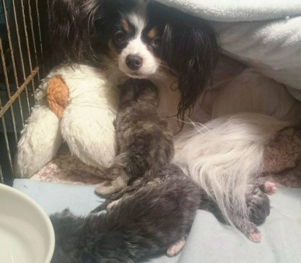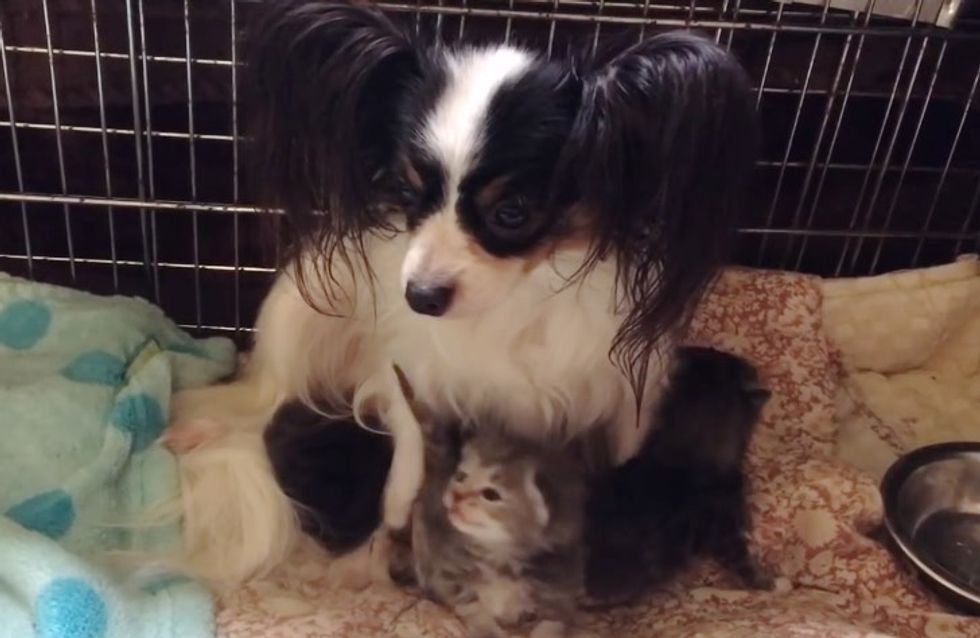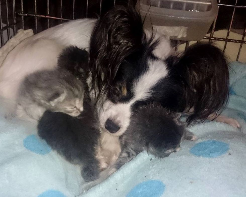 Three orphaned kittens needed a mother to feed and love them. A mama dog lost their own puppy and was devastated to find someone to care for. When they found each other, they became each other's saving grace.
