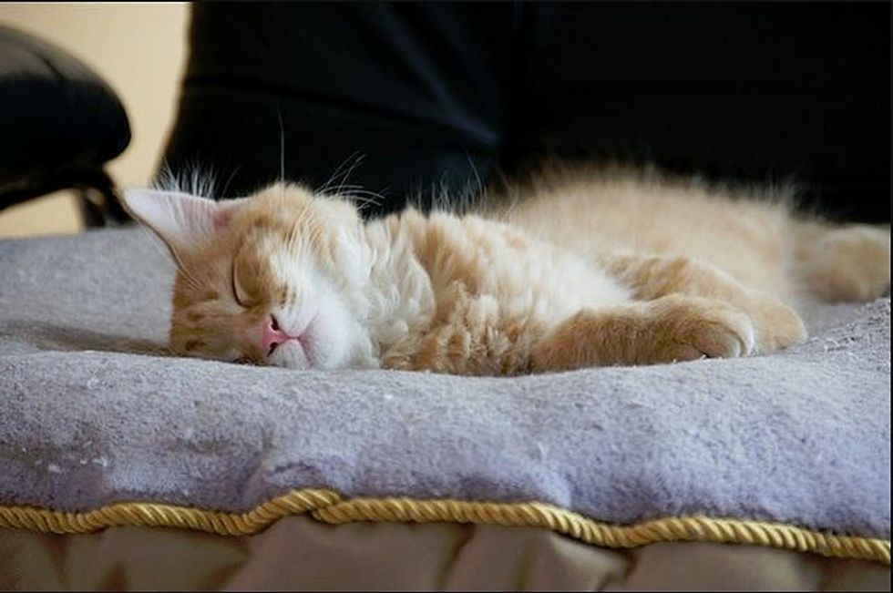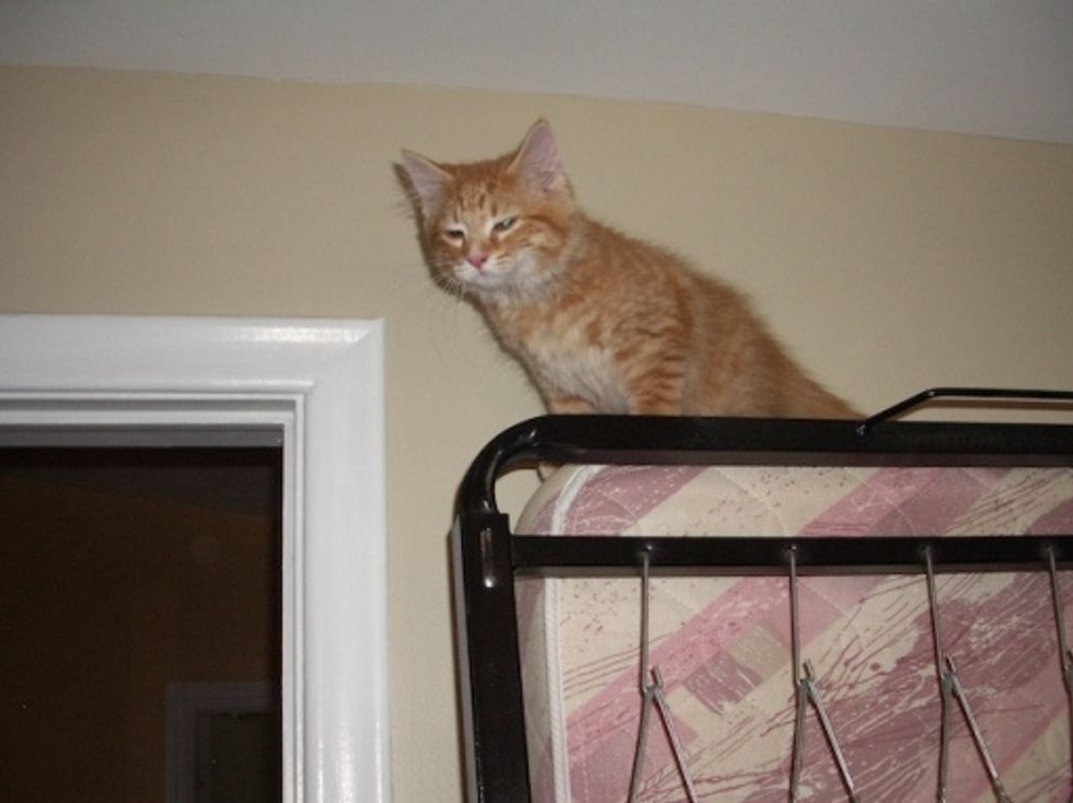 Oscar is quite a mischief in his new home. He is constantly looking for adventures and would nap anywhere he'd like. When Karen was about to move an old bed, Oscar did not hesitate and jumped on it, then crawled all over it like a little spidercat. Oscar is a great jumper and a climber.