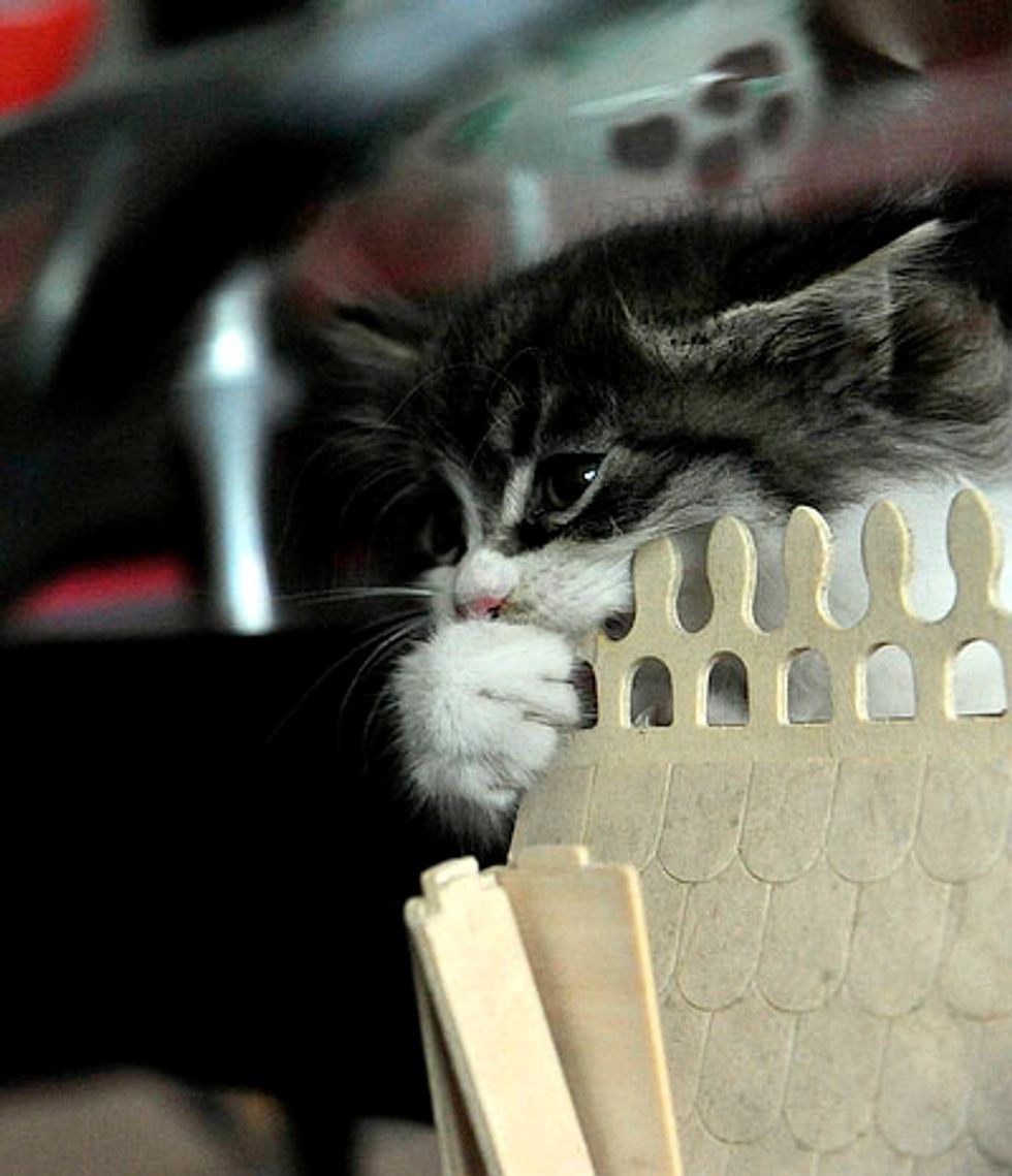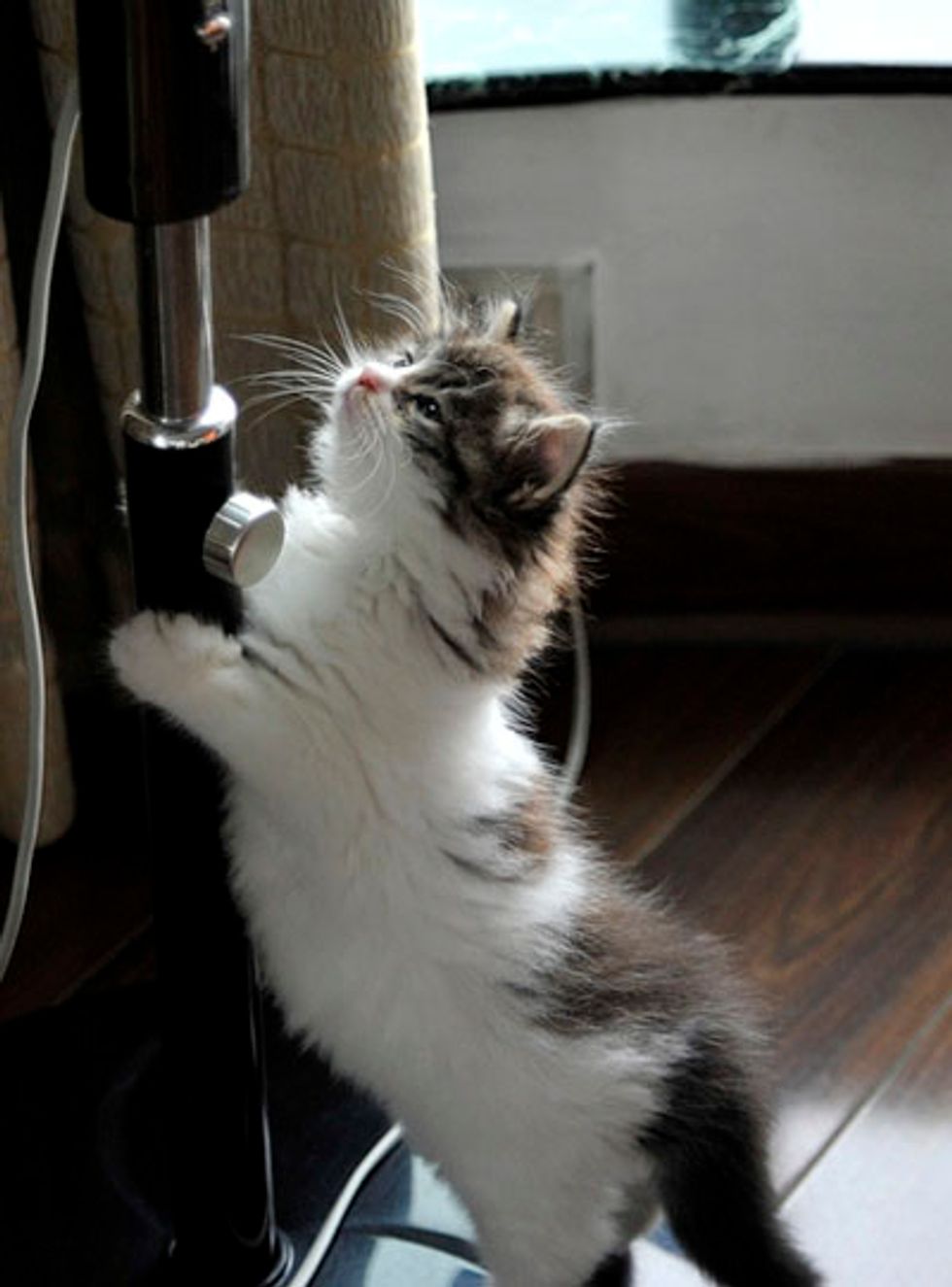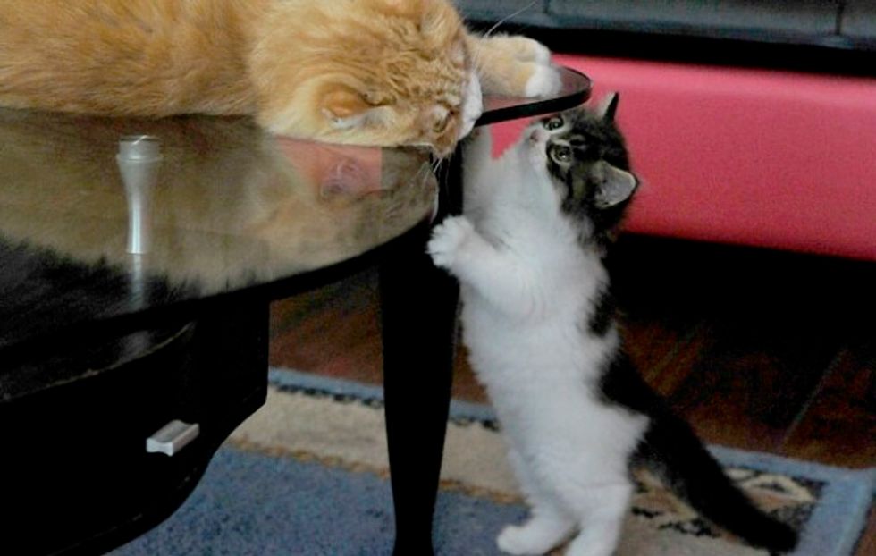 Oscar was curious about everything in the house. While Fei liked to watch him acting wild from afar, he would pounce on Fei to show him he was bigger than what others might think he was.