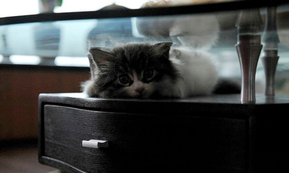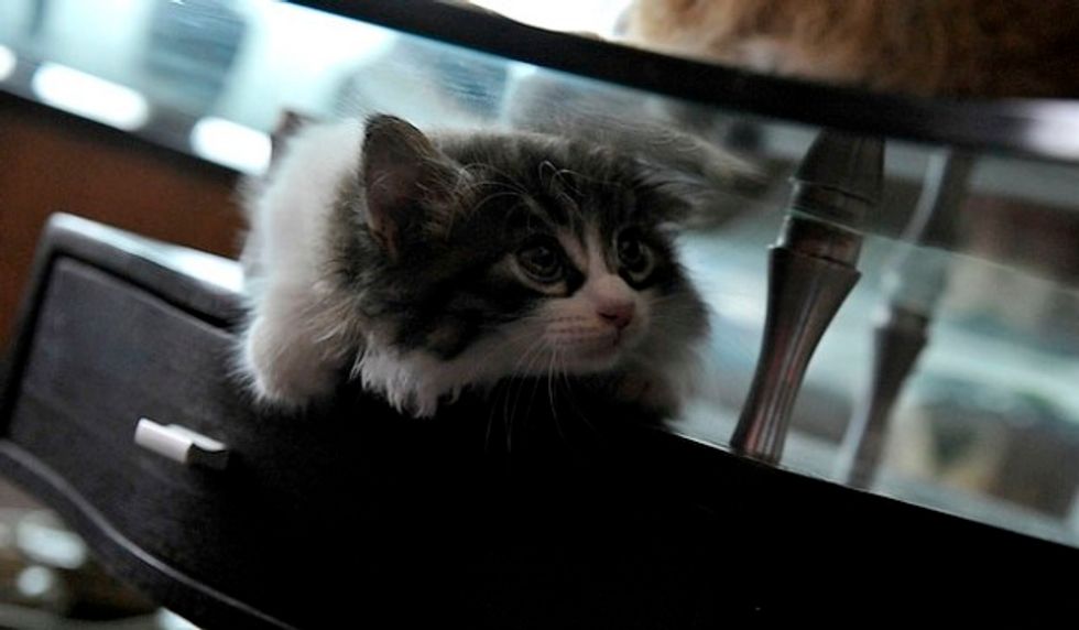 Sandy started looking to bring home a little kitten when she thought it would be nice for her cat Fei to have someone keep him company when she is not around. Then one day Sandy found Oscar, a fuzzy little guy with large eyes. It was love at first sight. Sandy knew right away that little Oscar would be coming home with her.