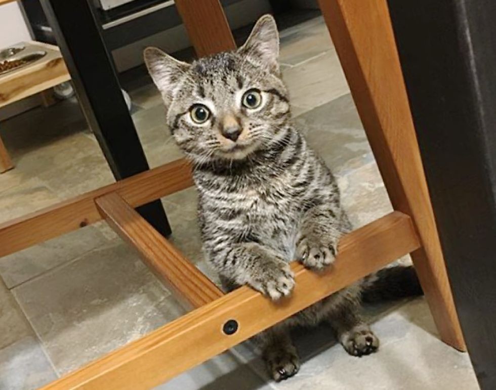 Despite his physical limitations and petite size, the tabby is incredibly playful and seeks attention from his humans whenever he gets a chance. If he spots a paper bag, he'd try to wrestle with it. No toy can escape his keen eyes. The fearless cat will pounce and go after anything that moves.