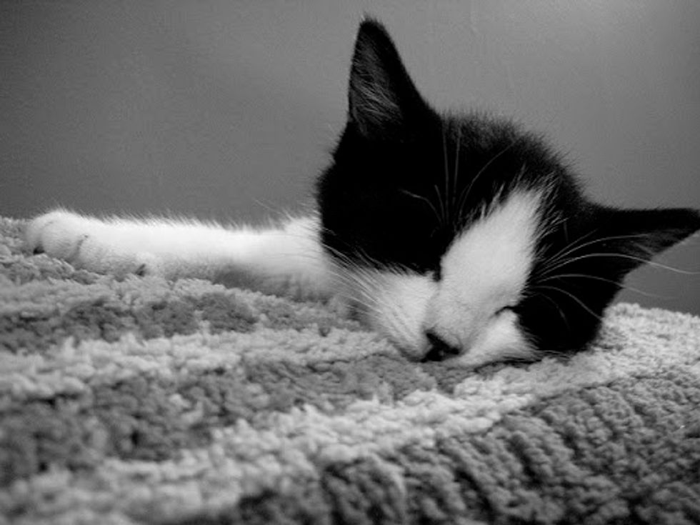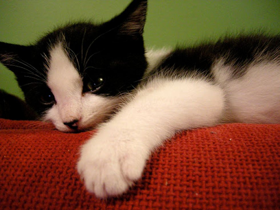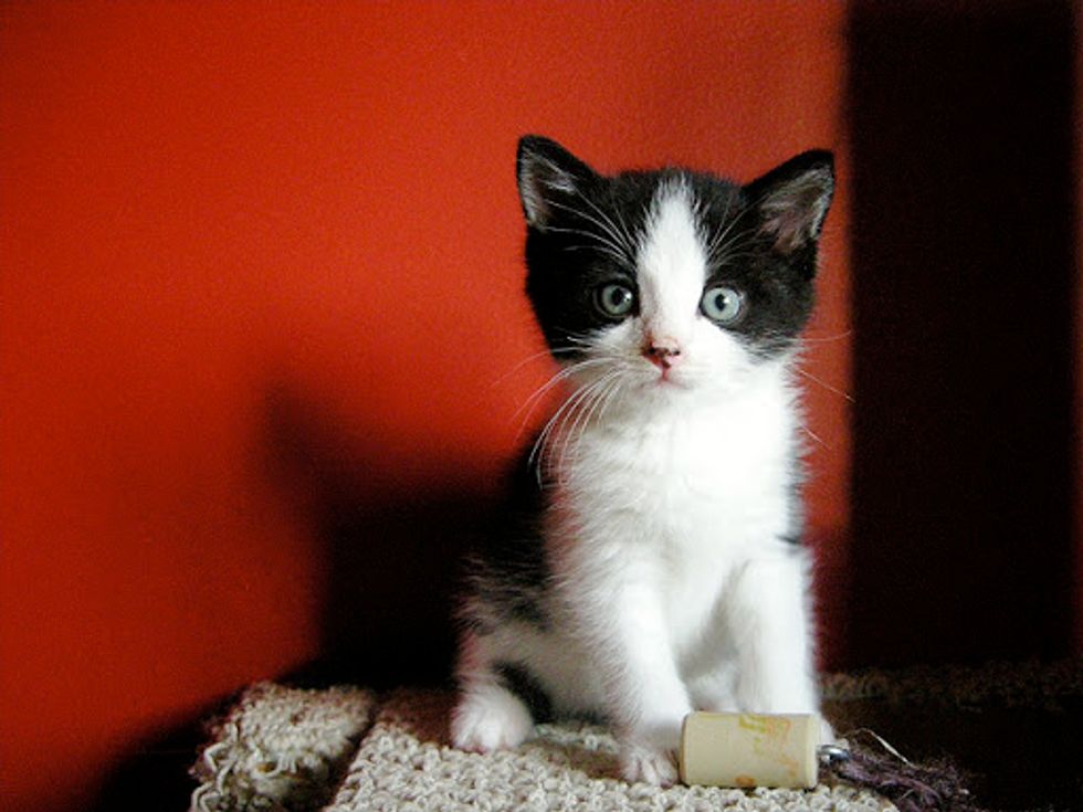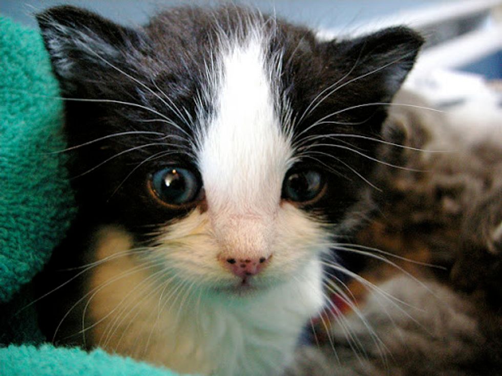 Panda Bear was found along with two other kittens under a shed by a guy who eventually brought them to the Frederiction SPCA in Canada back in September, 2009. The man thought that "their mom had been hit by a car because the kittens had been alone for a few days." They were 3 weeks old when they were brought in. Jill Hudgins, their foster mom bottle fed Panda Bear and his siblings for a little while. Panda Bear got his name from his cute little markings. "We thought his markings made him look like a little panda."