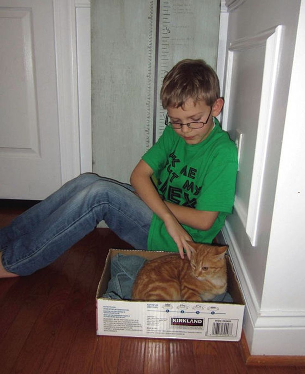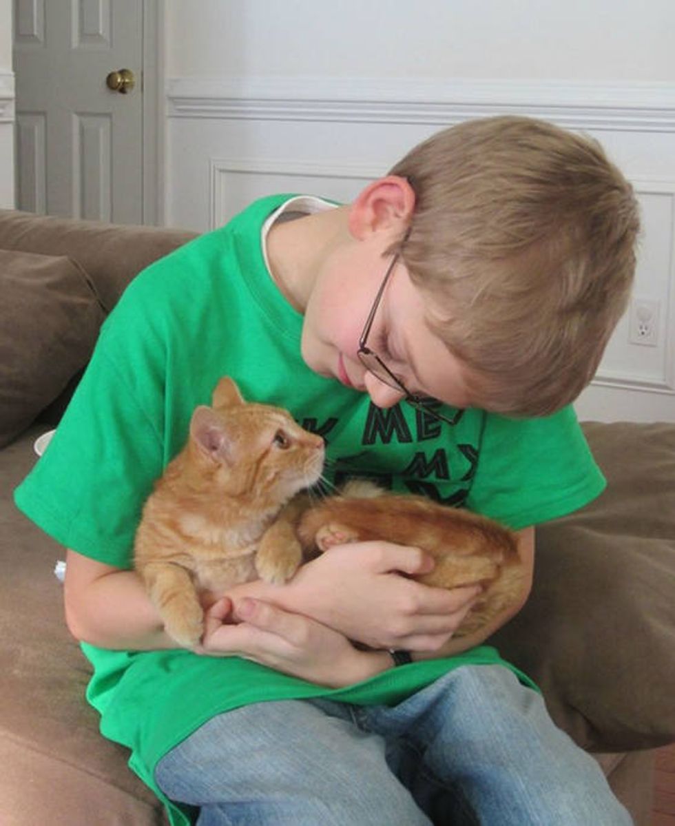 Patches the cat found his human when a boy came to the shelter for a cat on his birthday. "Surprised my 10 year old today on his birthday by letting him bring home a cat from the shelter. His cat was the runt of the litter, shy, and timid. When asked why he picked that cat he said 'I don't know, he just seemed so special.' I think they were meant for each other," said the dad via reddit.