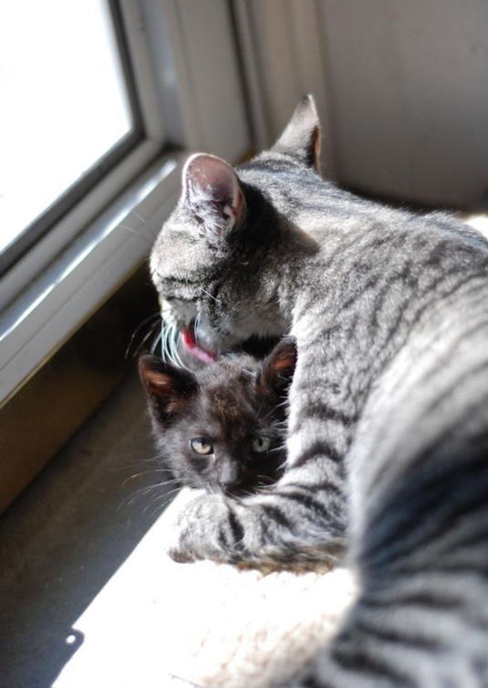 Tenth Life introduced the two lovely kitties in the same foster family. Now there is nothing but love in their home.