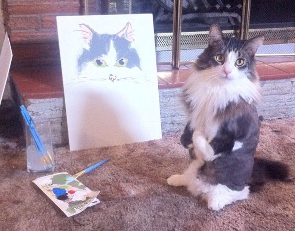 Meet Pippin, a fluffy cat who is happily living his cat life on two legs.