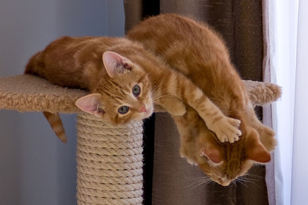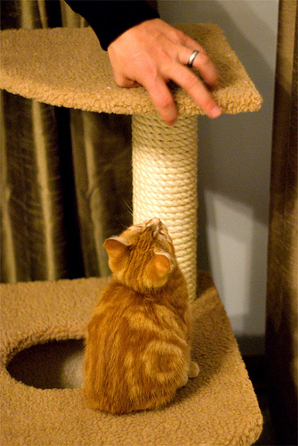 "When we were picking up the kittens, we decided against getting one of the various cat furniture things, but after we played with them and saw how much they liked to climb on us and perch on our laps, we decided to go back out and buy a little "treehouse" type thing with some built-in rope scratching posts."