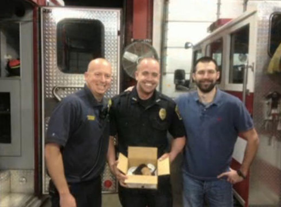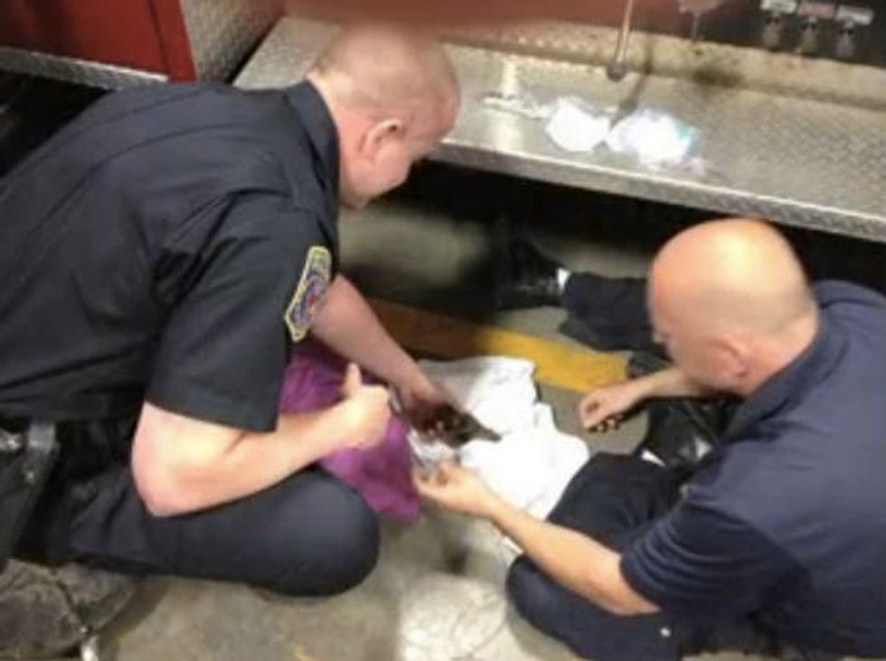"The third, we weren't having so much luck with, so we rushed to the fire department." They hooked up the kitty to oxygen and gave the little one chest compressions. It saved the kitten's life.