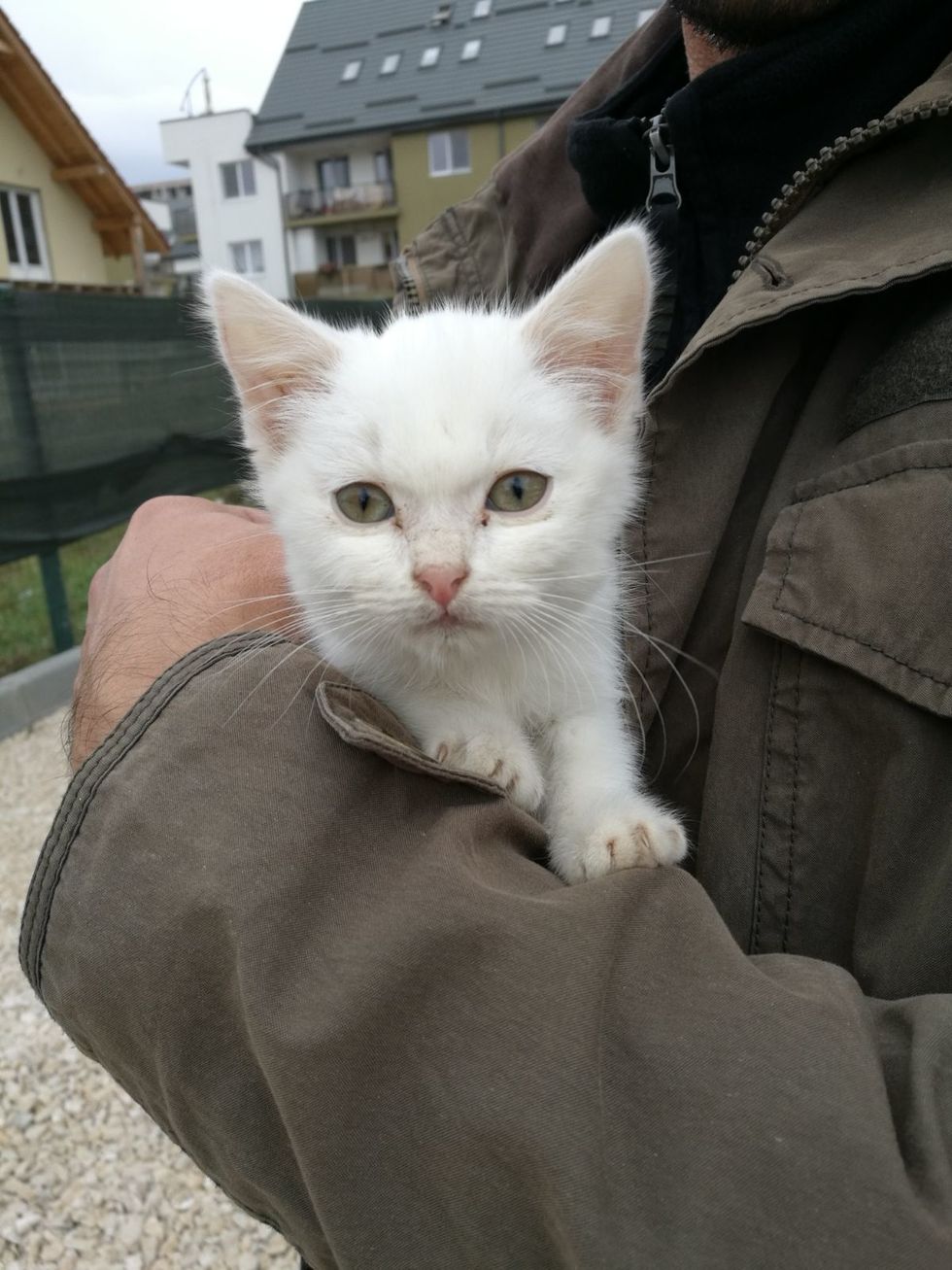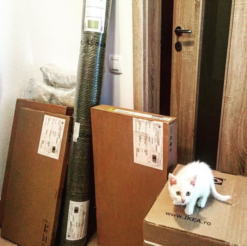 "So there we were, new place with no furniture, no bed but a little white cat, our new family member, Abyzou," Sorin said. "She was abandoned and very dirty, hungry and smelled like trash. When we got her, she was very friendly and eager to be loved."
