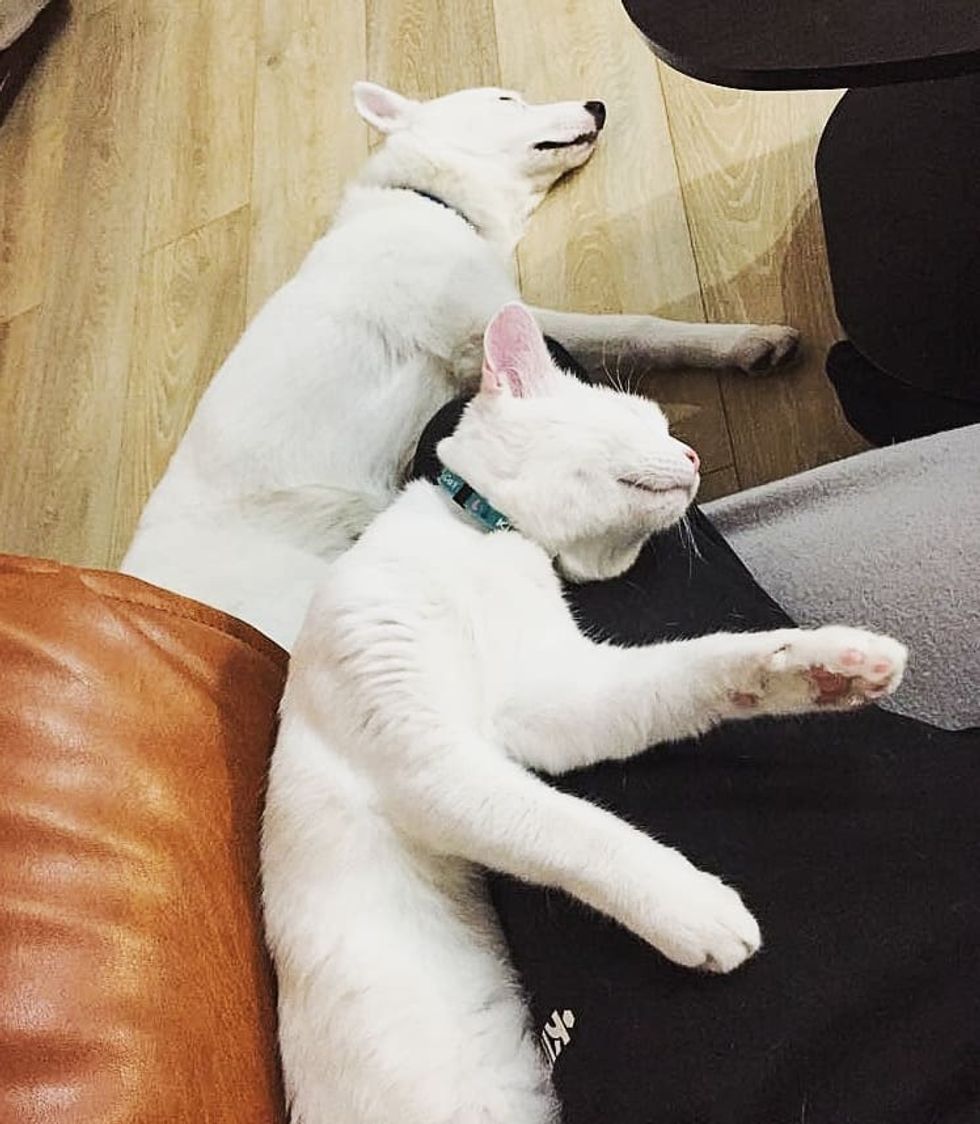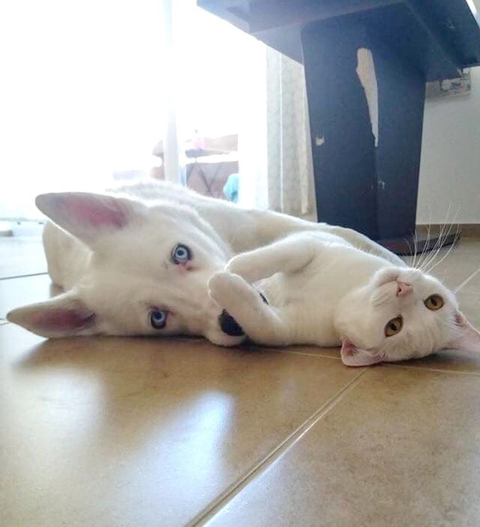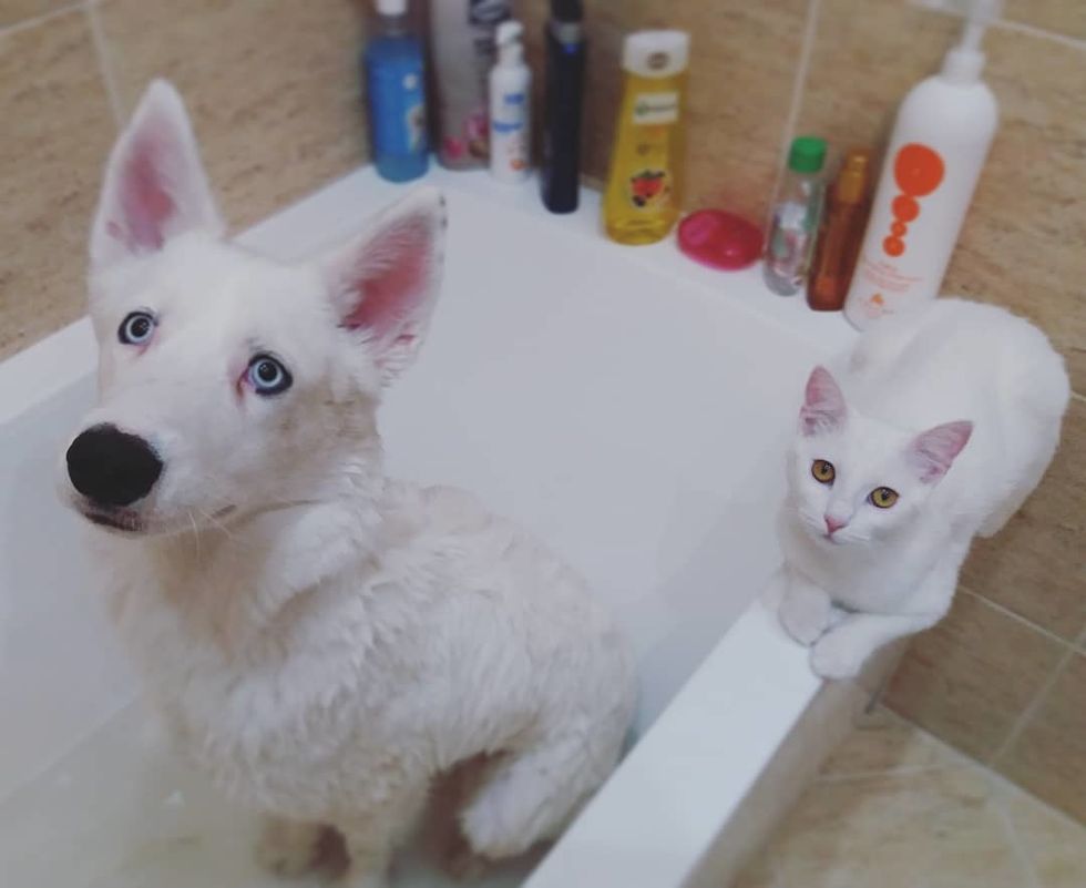 "The second day, they started to smell each other but kept a little distance until we filled Dante's bowl with water, and Aby ran straight there to drink his water even though hers was full," Sorin told Love Meow.