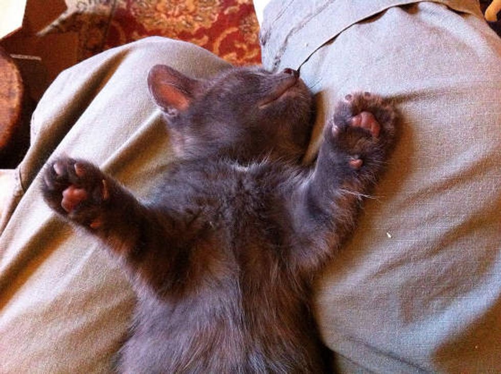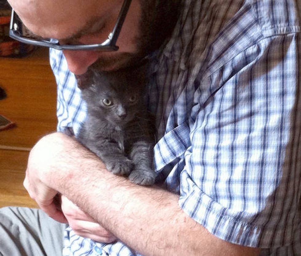 Quincy was rescued from a hoarding situation by Forever Home Cat Rescue. This is him having a cuddle with his human dad for the first time.