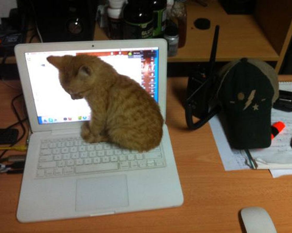 The little guy is helping out on his human friend steve's computer! He always has to be involved!