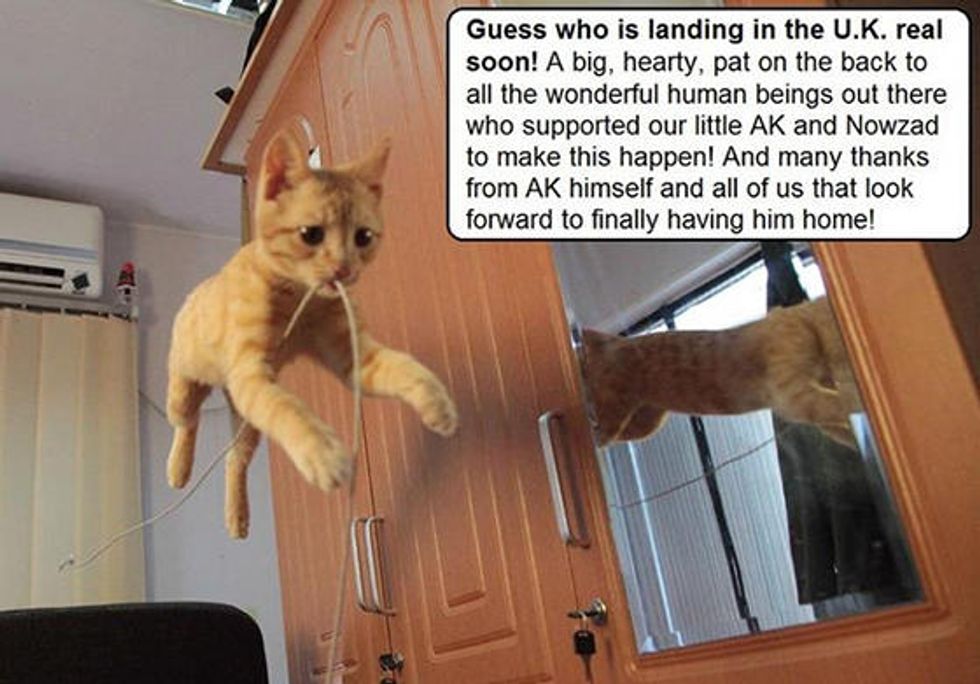 Thanks to Nowzad, a non profit animal rescue organization based in Afghanistan and all the people that donated to their fund, AK Kitty is on his way to his forever home in England.