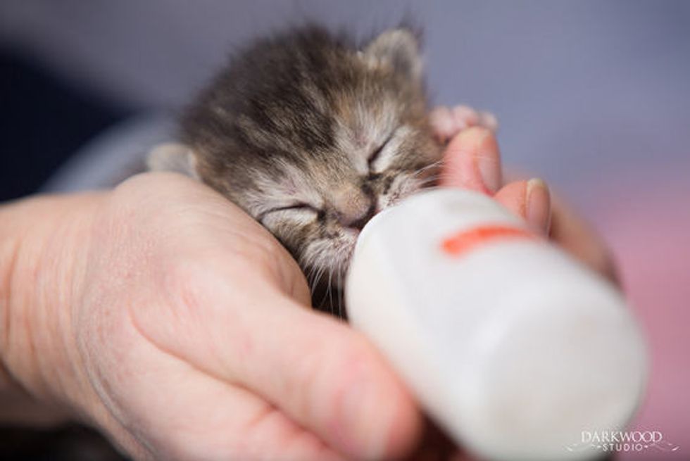 In the interest of not overexerting poor Chaos and her amazing maternal kindness, we moved a few kittens to other foster homes for bottle-feeding. The babies remaining in her care have seamlessly blended into one big family, and the foster family lovingly supplements Chaos’ milk supply with the formula our supporters so generously donated.