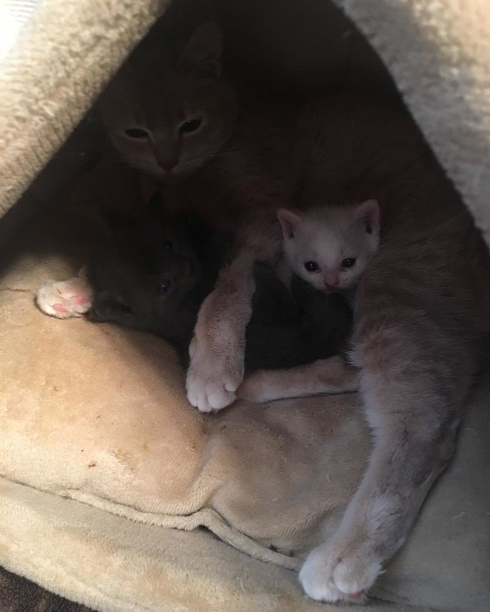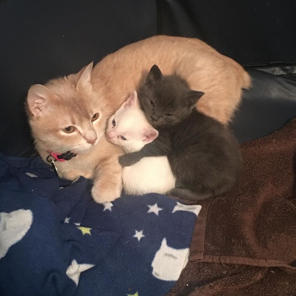 Two abandoned kittens needed a mom and a grieving mother cat needed babies. When they found each other, they filled the void in their hearts.