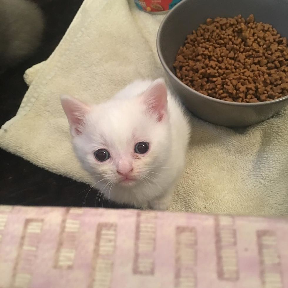 Whitey who was found at death's door, now climbs everything he can put his paws on.