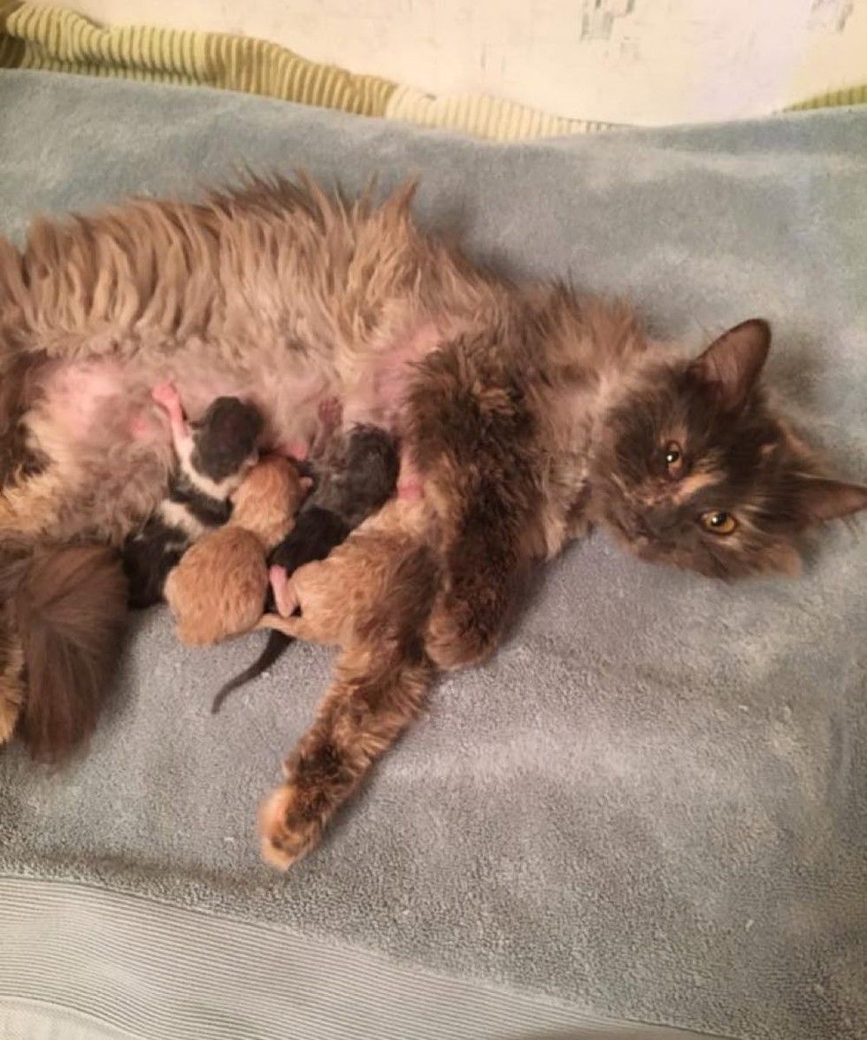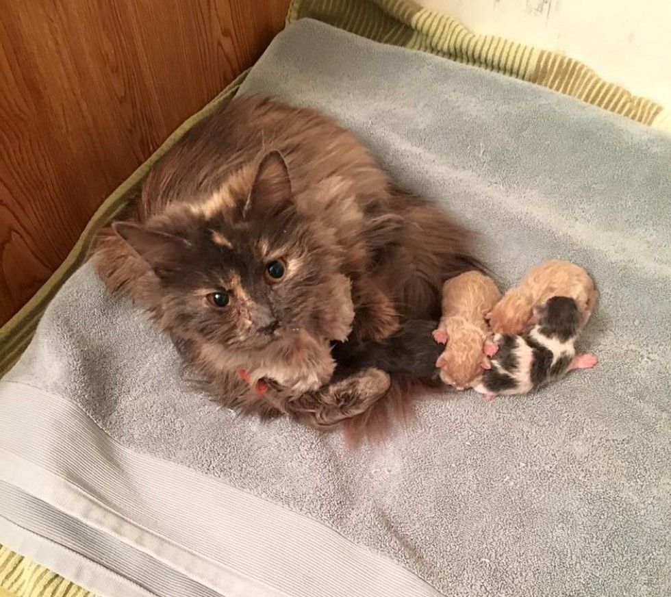 "We got Sophia when she was turned into a local shelter as a stray pregnant cat. We had her about 3 days when she got a horrible upper respiratory infection. She was so congested in her head that she refused to eat," Here Kitty Kitty Rescue told Love Meow.