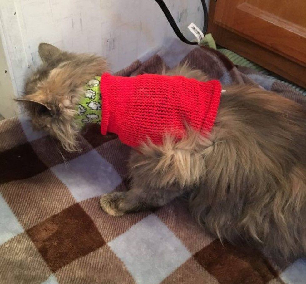 After one week of trying to syringe feed her a high calorie food, it was to no avail. So the veterinarian decided it would be best for her to have a feeding tube to help her eat. "That way we could bypass her congestion and get her and the babies the nutrients they needed."