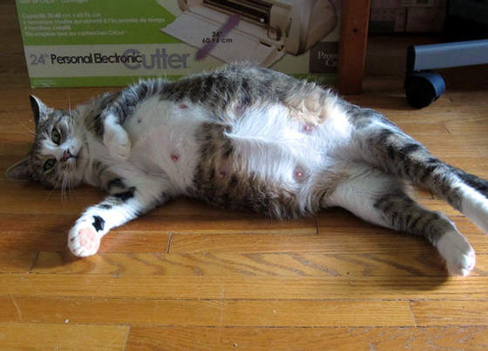 Misha the rescue cat mom came to her foster home with an enormous belly that was ready to pop.