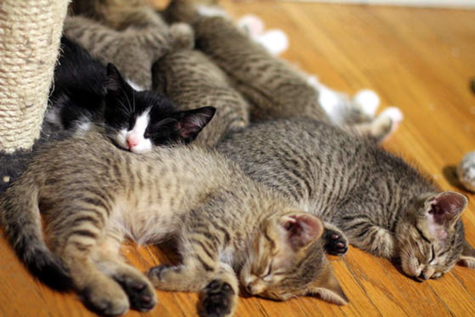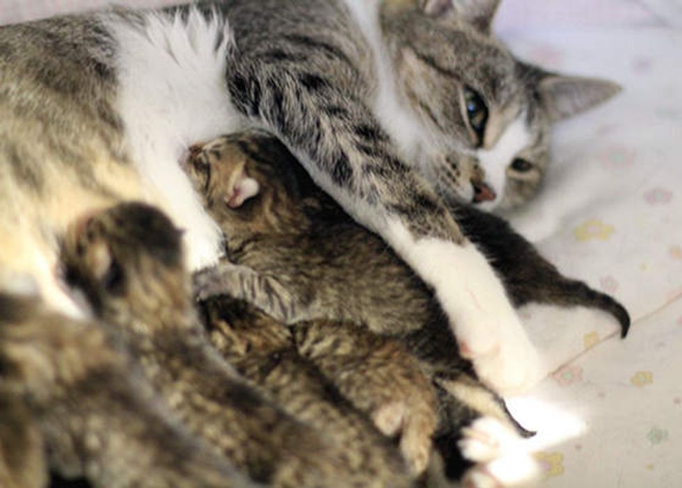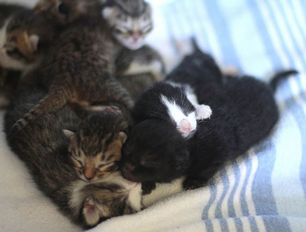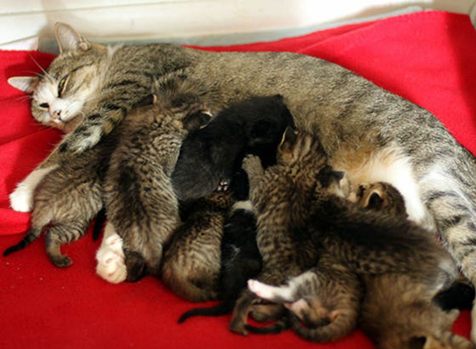 She didn't just give birth to 5 or 6 kittens, she gave birth to 9.