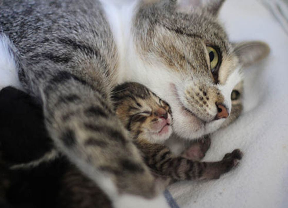 Misha keeps an watchful eye on her kittens and gives them an unlimited supply of love and care.