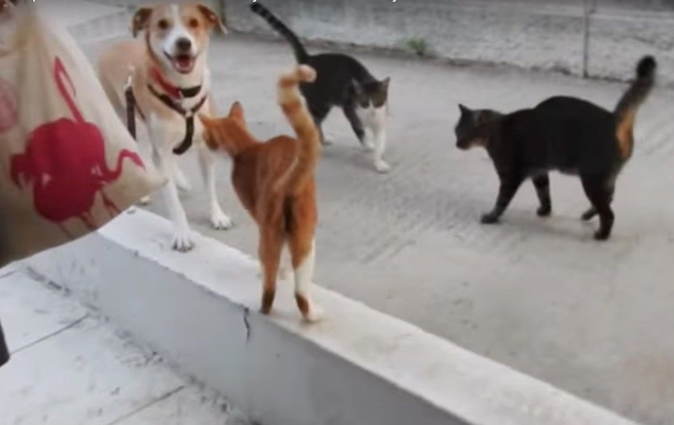 Their dog Meli shares a very special bond with each and every single kitty they feed. The cats see her as their food provider, who comes to feed them three times a day.