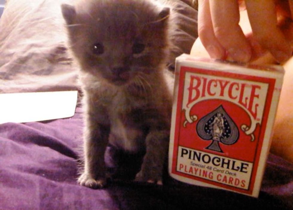 Four years ago, he was just the size of a deck of cards living a feral life. Look at him now!