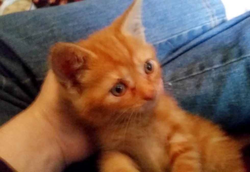 Meet Sol, the little ginger, who was found under the deck. They cleaned him up and welcomed the little one to his new home.