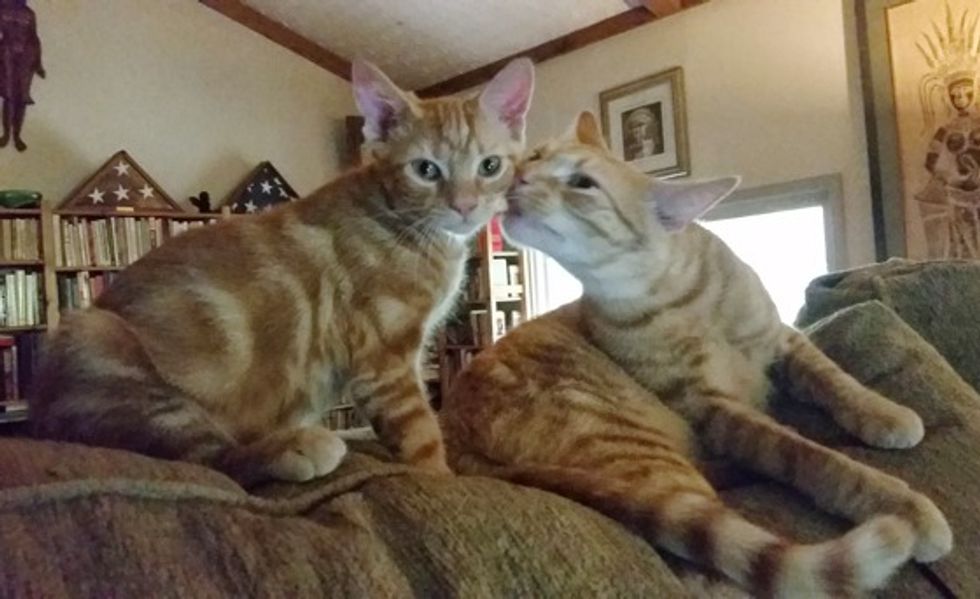 Sol met another ginger cat named Boots. "Boots wasn't Sol's biggest fan at first, but Sol grew on him."