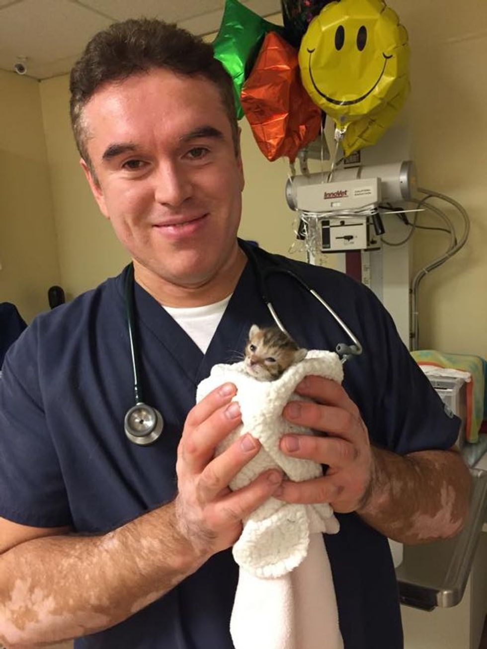 Soren the kitten is a little fighter. He's the only survivor in his litter rescued by Good Karma Pet Rescue of South Florida. Dr. Simon has been giving the little tabby around-the-clock care - bottle feeding, treatment, cleaning, keeping him warm and giving him a lot of love to help him get better.