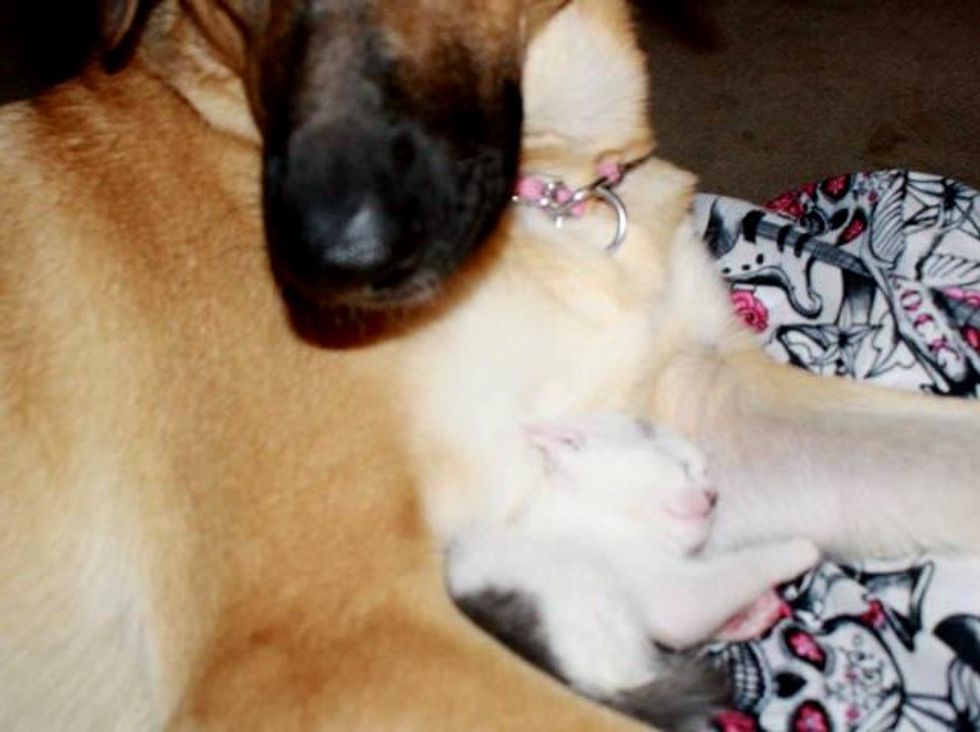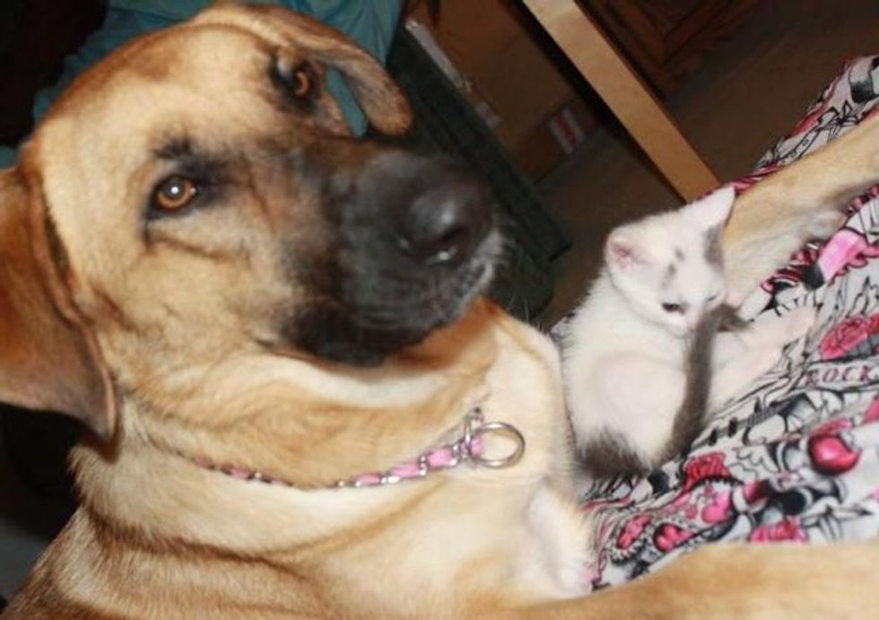 They found a tiny baby kitten on the street. Their family dog adopted her right away and was very protective of her.
