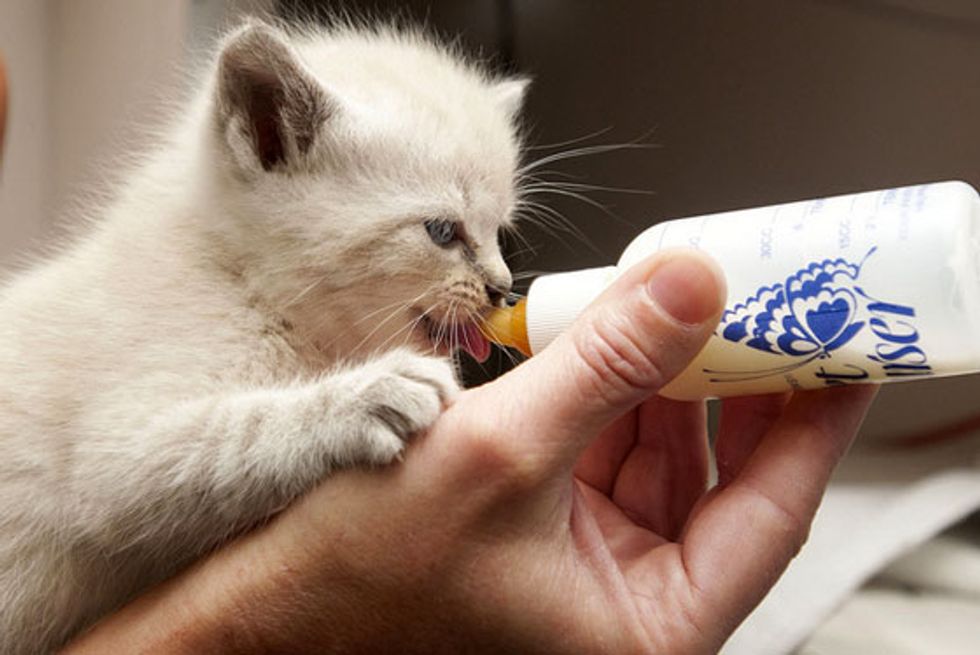 This tiny kitten gets some warm milk from a soldier. He and five other siblings were rescued by soldiers and staff on Oct, 13, 2011 in a parking lot at the Wilson Sports and Fitness Center, JBLM Lewis North, a US military facility.