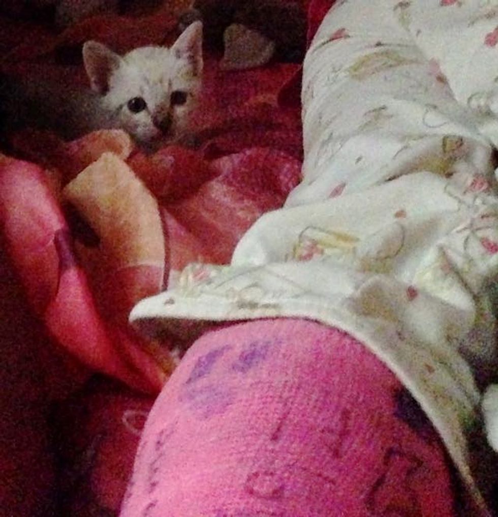 A tiny rescue kitten helped a girl with a broken leg heal. Now a cat, he is still looking out for her like a brother would.