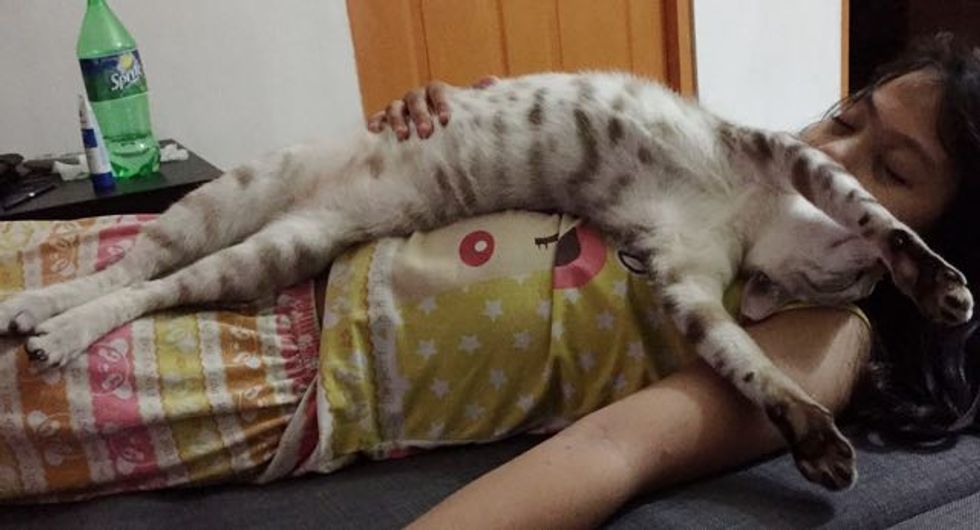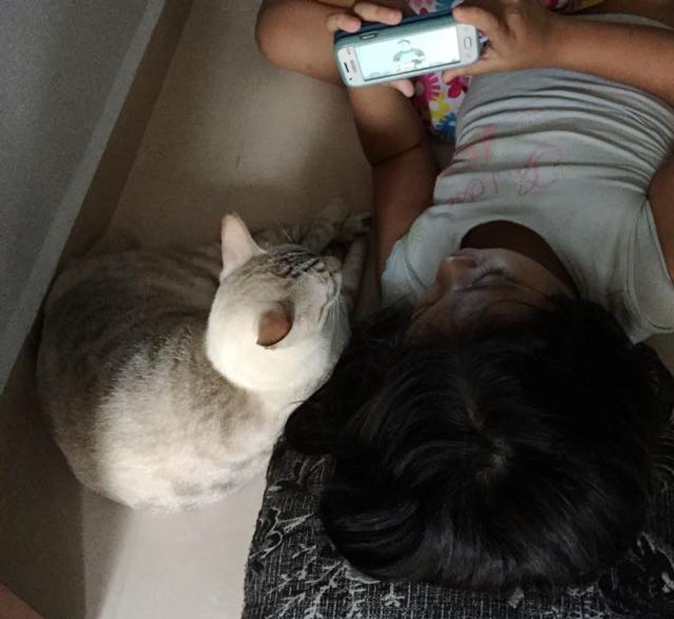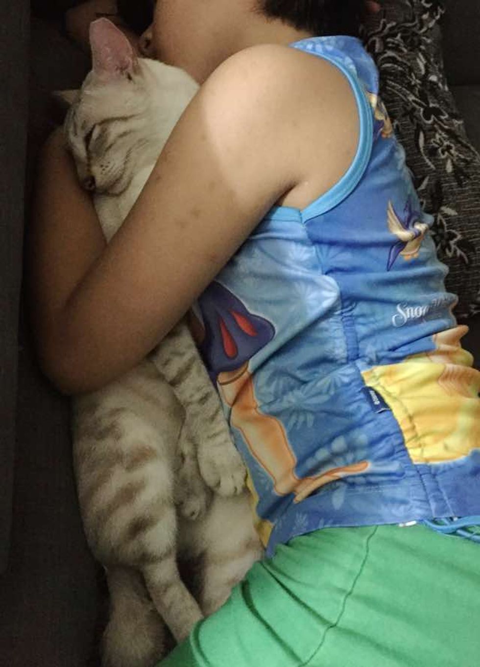 "Even when he was just a baby, he somehow knew she wasn't well and he slept on her tummy all the time. Now that he's bigger, he still does it every day," Majid told Love Meow.