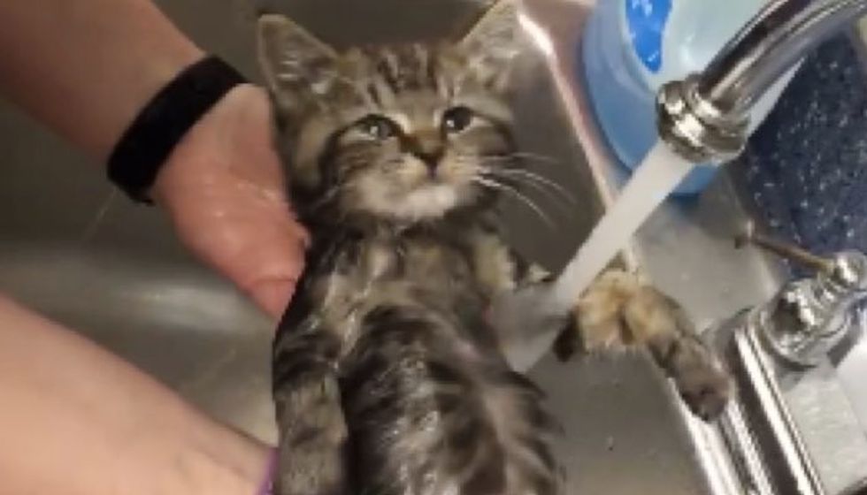 This little rescue kitty surprised everyone how chill he was when he got his first bath.