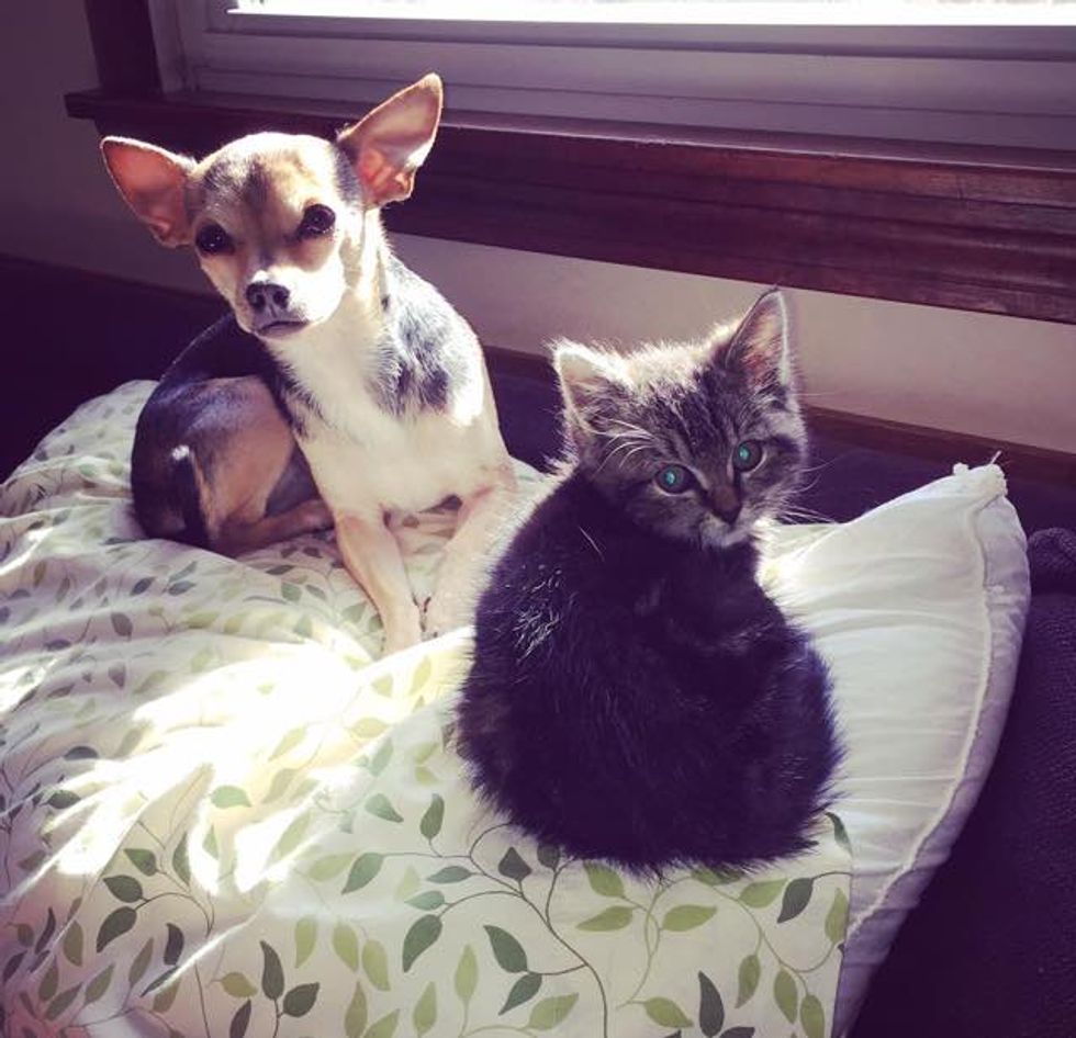 "He went from being saved from the streets, to the infamous bath loving kitty, to sharing his new forever home with 3 other cats and 2 Chihuahuas," Greater Androscoggin Humane Society told Love Meow.