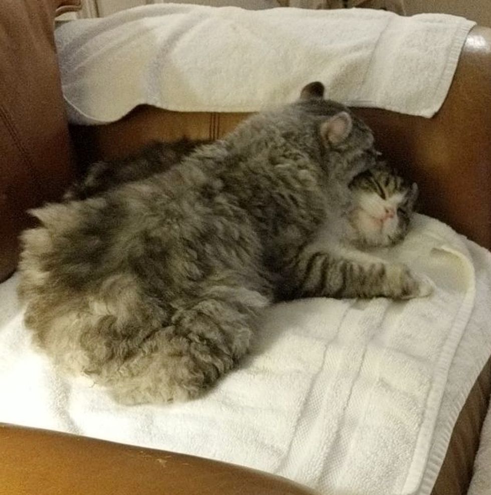"He was really hissy at me at first but it was all for show," Jacqueline told Love Meow. Shortly after he arrived, he warmed up to his rescuer and started rumbling with his adorable purrs.