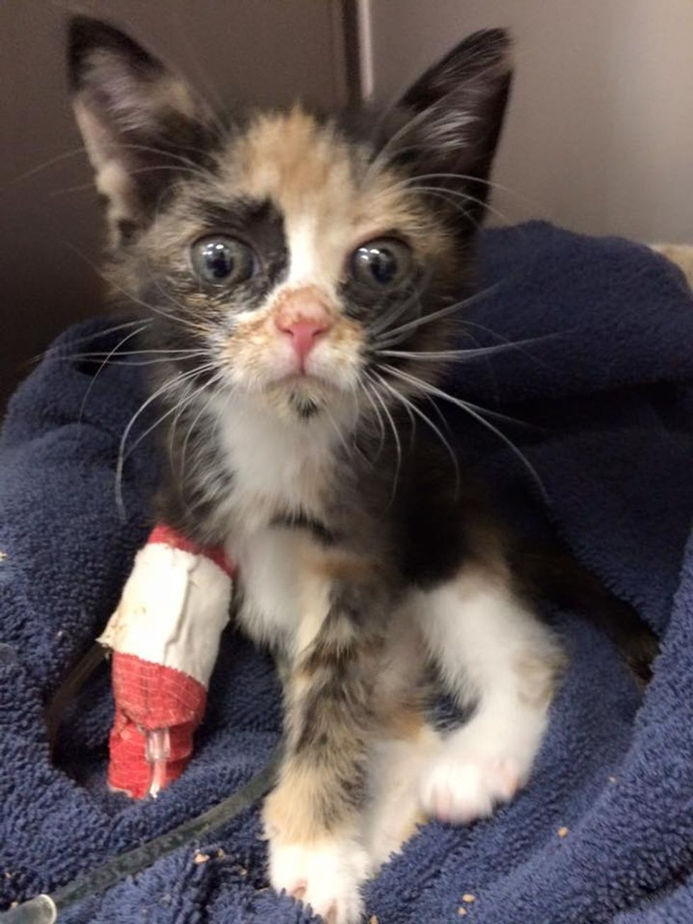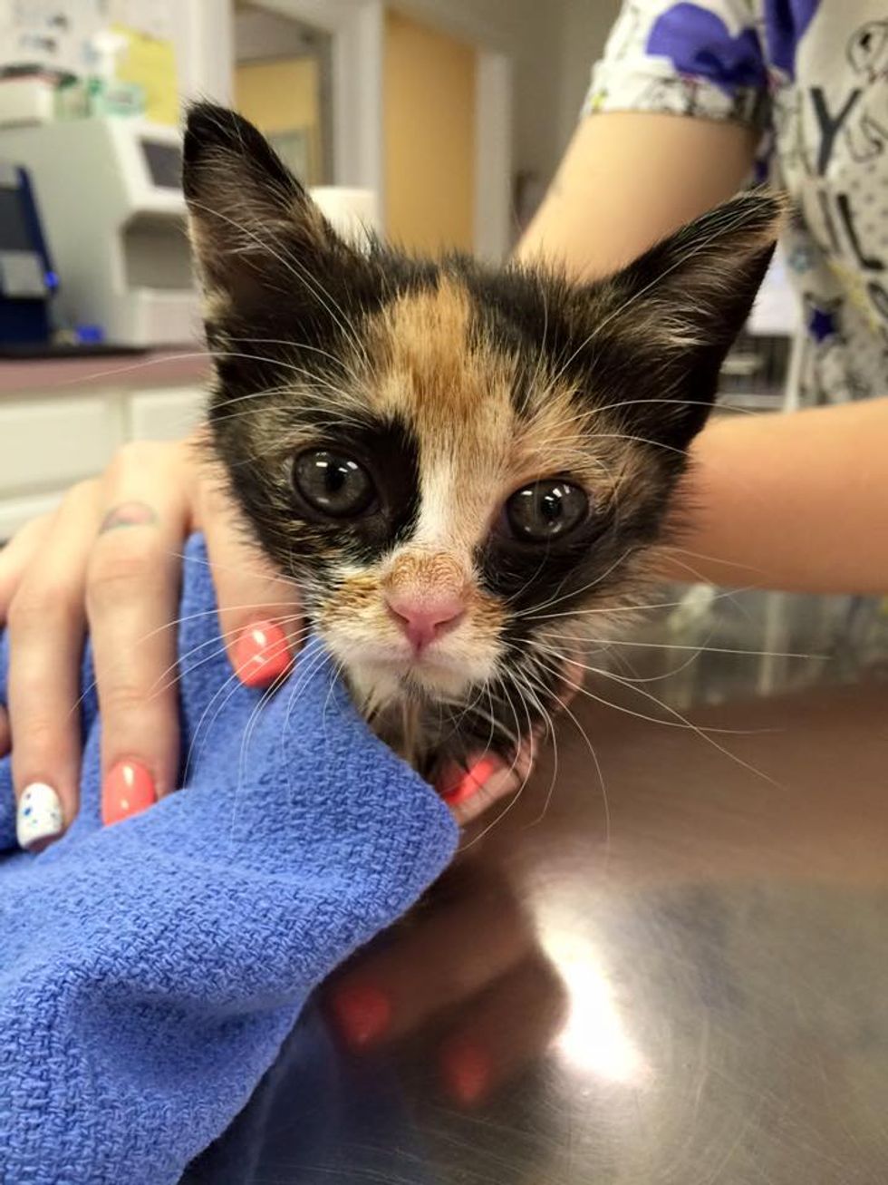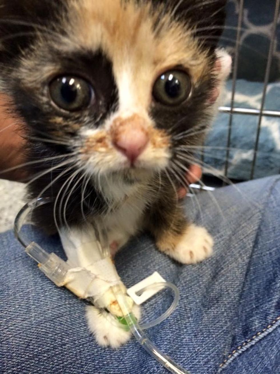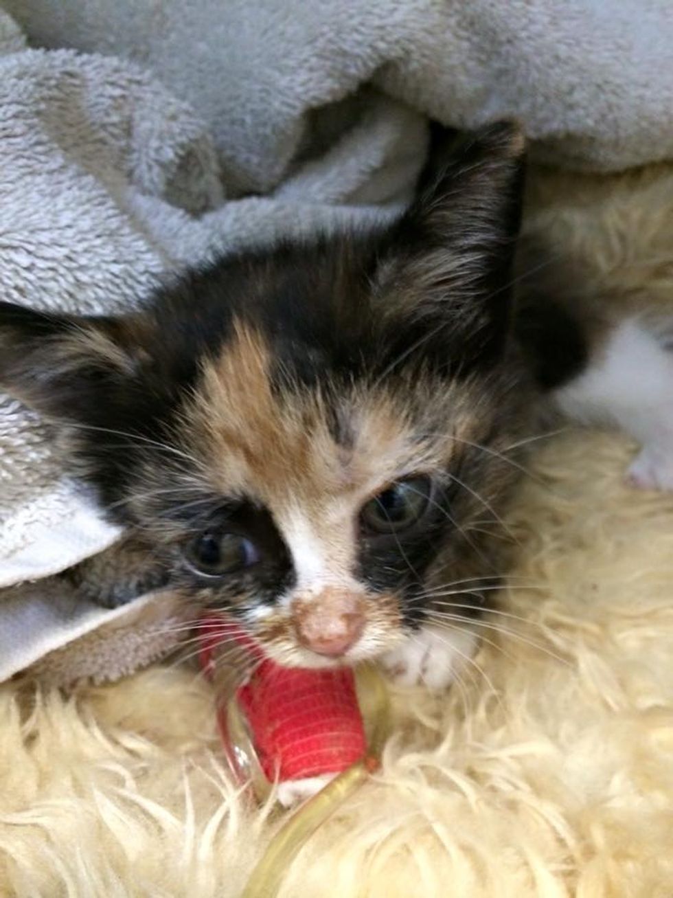 The vet wasn't sure if they would be able to save the kitten, but the rescue group knew they had to keep trying. "We transferred her to the emergency clinic for the weekend. She remained on fluids, and more blood work done and was monitored closely. But, despite their efforts the tremors were not going away," the rescue group said.