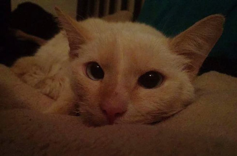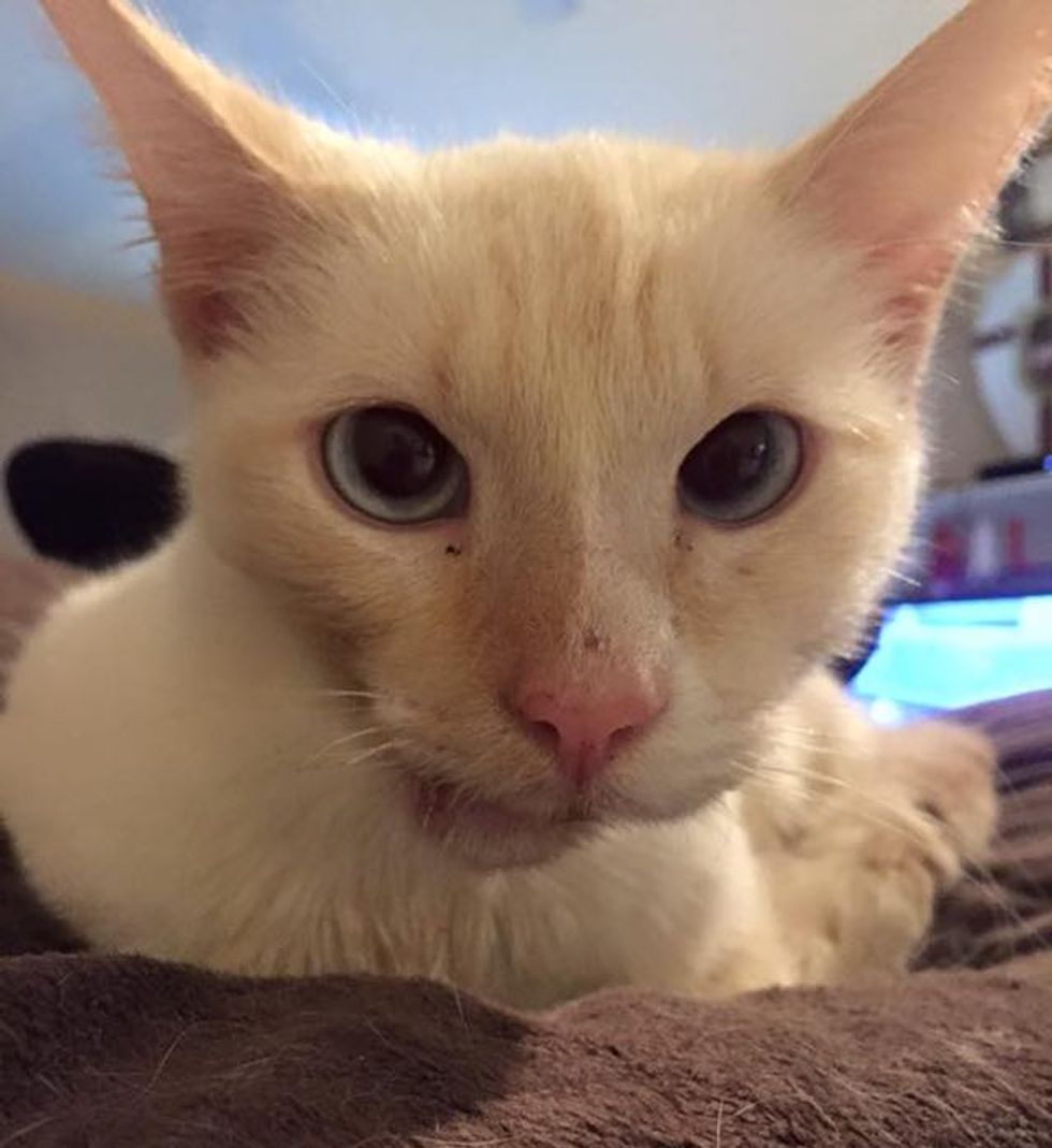 "Many people have asked if Duchess is able to eat, and she absolutely can, but only soft canned food. Since she cannot open her jaw very wide we blend the cat food up and mix in water and chicken broth, it ends up being the consistency of a smoothie, she chows down on 3 cans a day without any issues."