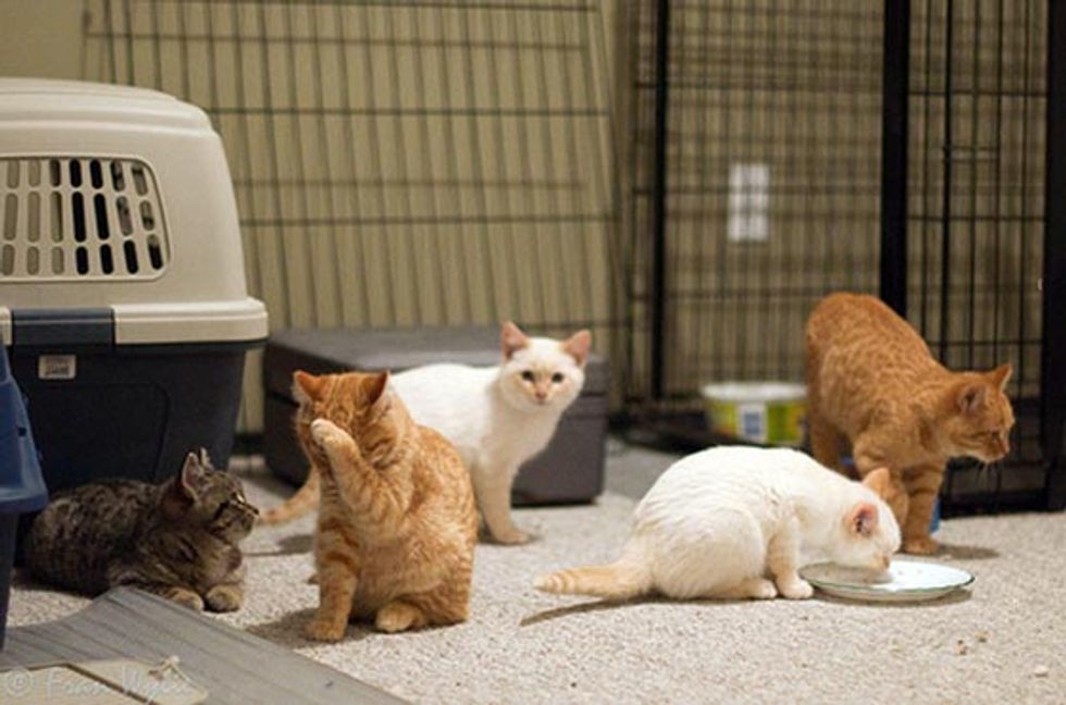 "It turned out that there are 5 kittens after all," said Fran on her flickr. "We didn't know there were 2 orange kittens. But I trapped them both together, so it was a surprise discovery." Her initial worries of not having enough room for all 5 quickly dissipated as she worked diligently caring for the farm kittens everyday. The bathroom was a little crammed at the beginning, and the kitties were very timid, but with help from the resident cats Alice and Petra, they slowly came out of their shell.