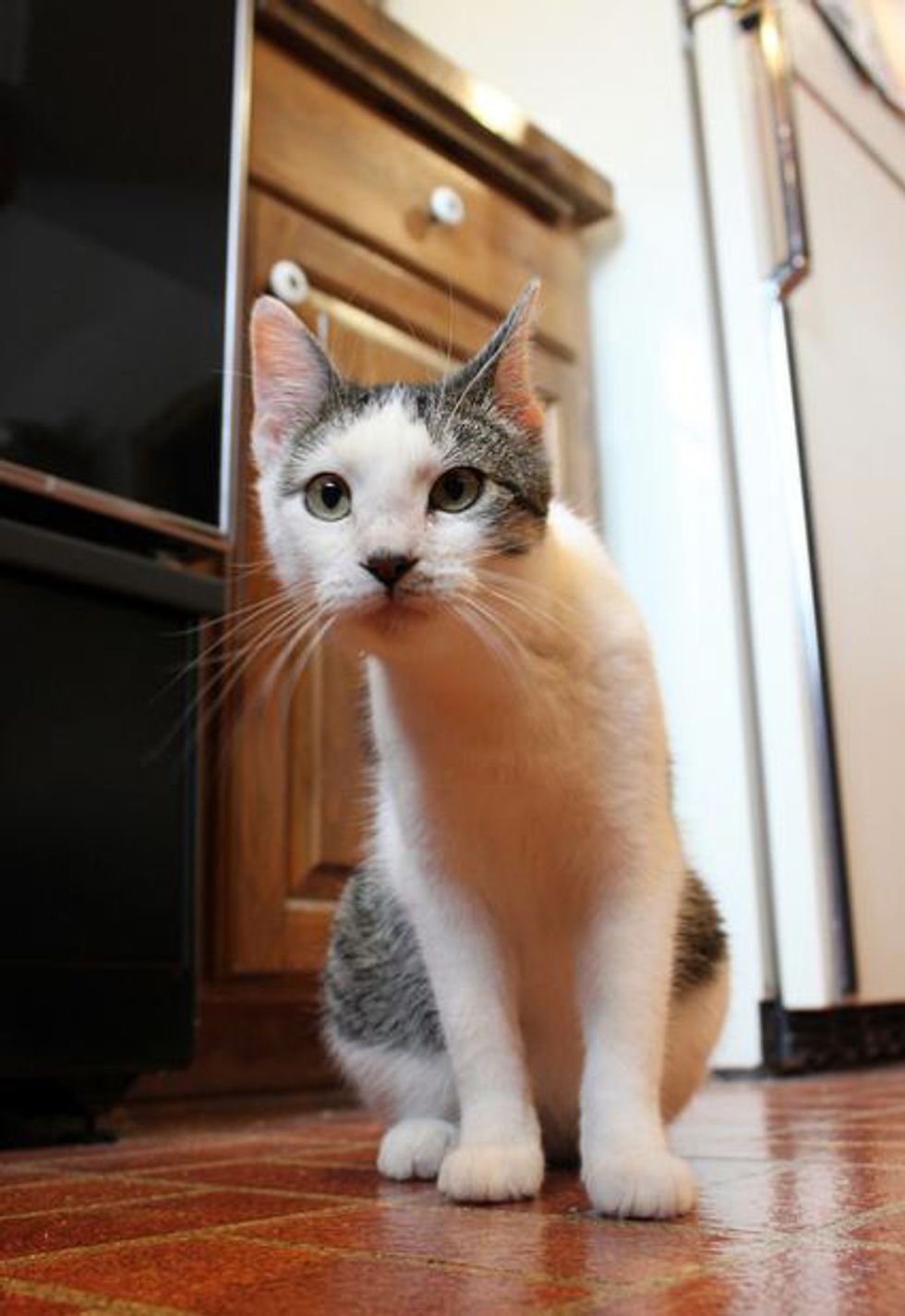 Curiosity is a fabulous boy that I am currently fostering. The kids named him Curiosity because he followed them around everywhere. He still has that bend to his personality, and is persistently curious no matter how many times we tell him he can't climb into the fridge whenever we open it. Curiosity was dumped on my friends' farm. He is one of the last dumped kittens to need homes.